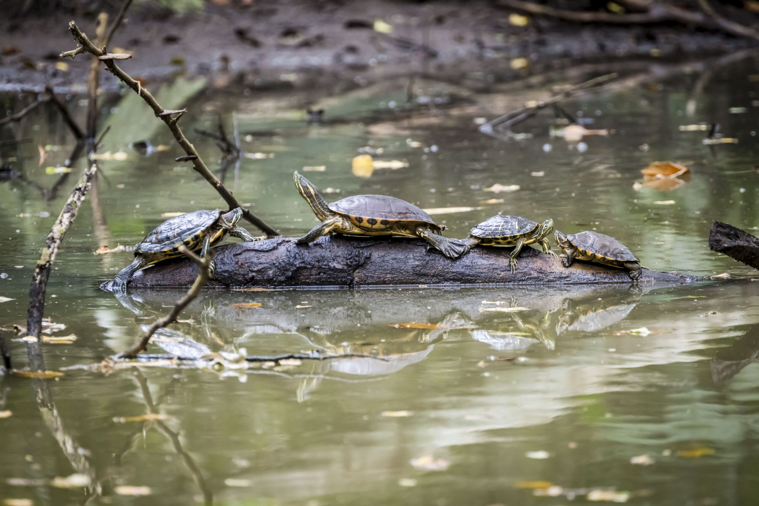 Dan nemen we een taxi naar het vliegveld want bij Avis hebben we een auto gehuurd. Het is nogal een spannende rit want de chauffeur slalomt als een dulle tussen baan 1, 2 en 3, afremmen doet ie vooral heel weinig. Zelfs Gooijert vindt het spannend, dus dat wil wat zeggen! Bij het vliegveld halen we de auto open voor de zekerheid kopen we een simcard voor 30 dagen internet want het is wel fijn als we overal online kunnen navigeren met de huurauto. Het is een Hyundai I10 grande. Dan rijden we naar Soberania park. Daar kan je meerdere trails volgens maar wij willen de pipelineroad doen aangezien je daar de meeste vogels en wildlife kan spotten. Om het begin te vinden van de trail is nogal een opgave, we rijden, zoeken en vragen, maar uiteindelijk vinden we het begin. Als we de weg vragen ligt er een krokodil in het water omringt door schildpadjes.