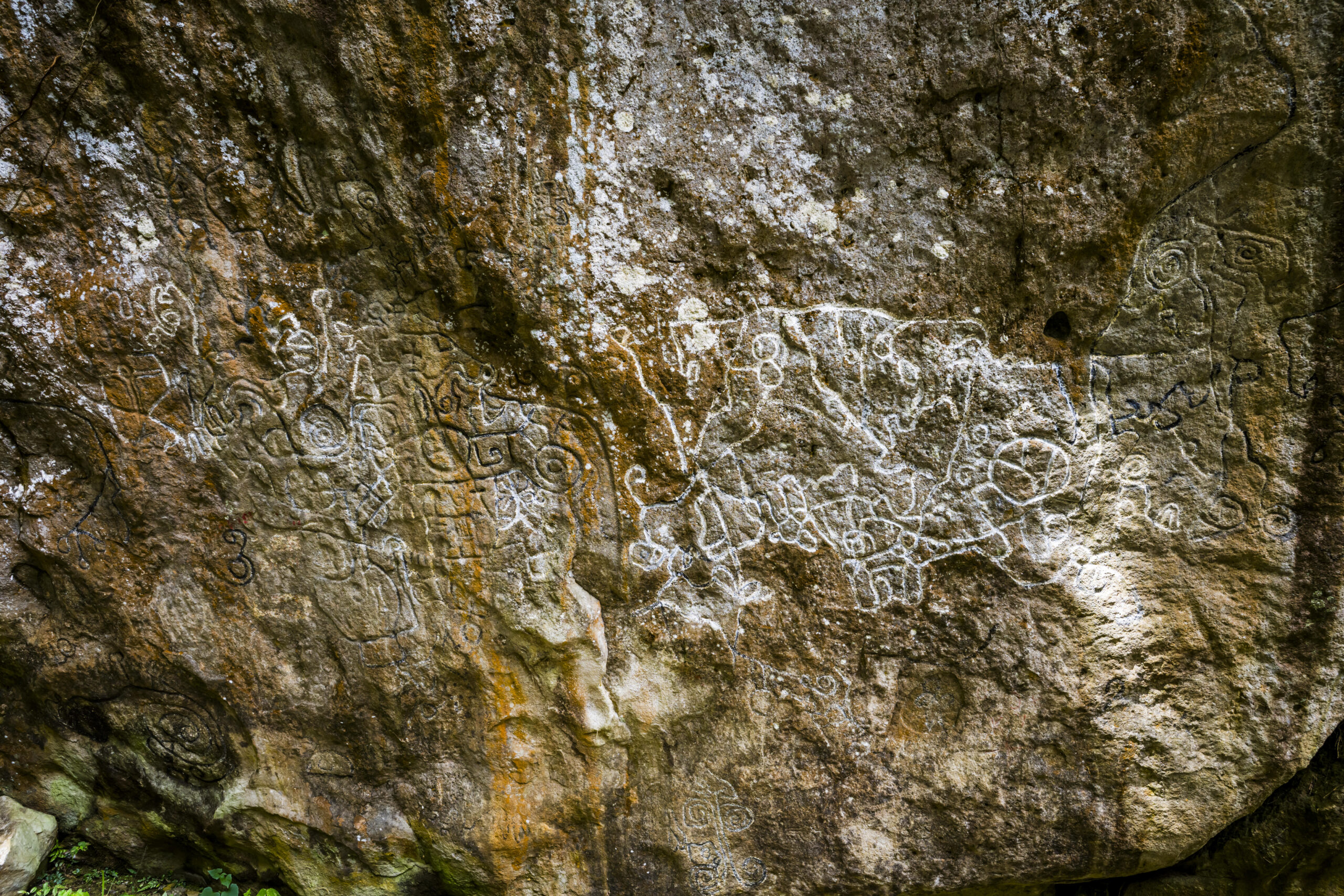 Als we bij El Zumbito aankomen zijn we aangenaam verrast. We worden hartelijk ontvangen door de eigenaren, het appartement wat we hebben is groot, schoon en goed onderhouden. De tuin is prachtig. Als we ons hebben geïnstalleerd gaan we naar 2 watervallen die in de buurt liggen. Eerst lopen we een stukje verkeerd, maar al snel vinden we de juiste weg. Dit is de La India Dormida Trail en duurt ongeveer een uur om naar boven te wandelen, dat doen wij nu niet, we gaan alleen naar de watervallen. De entree is 3 usd. Aan het begin kom je wat oude rotstekeningen tegen uit de oude antikietijd, haha, sorry meer info hebben we niet.