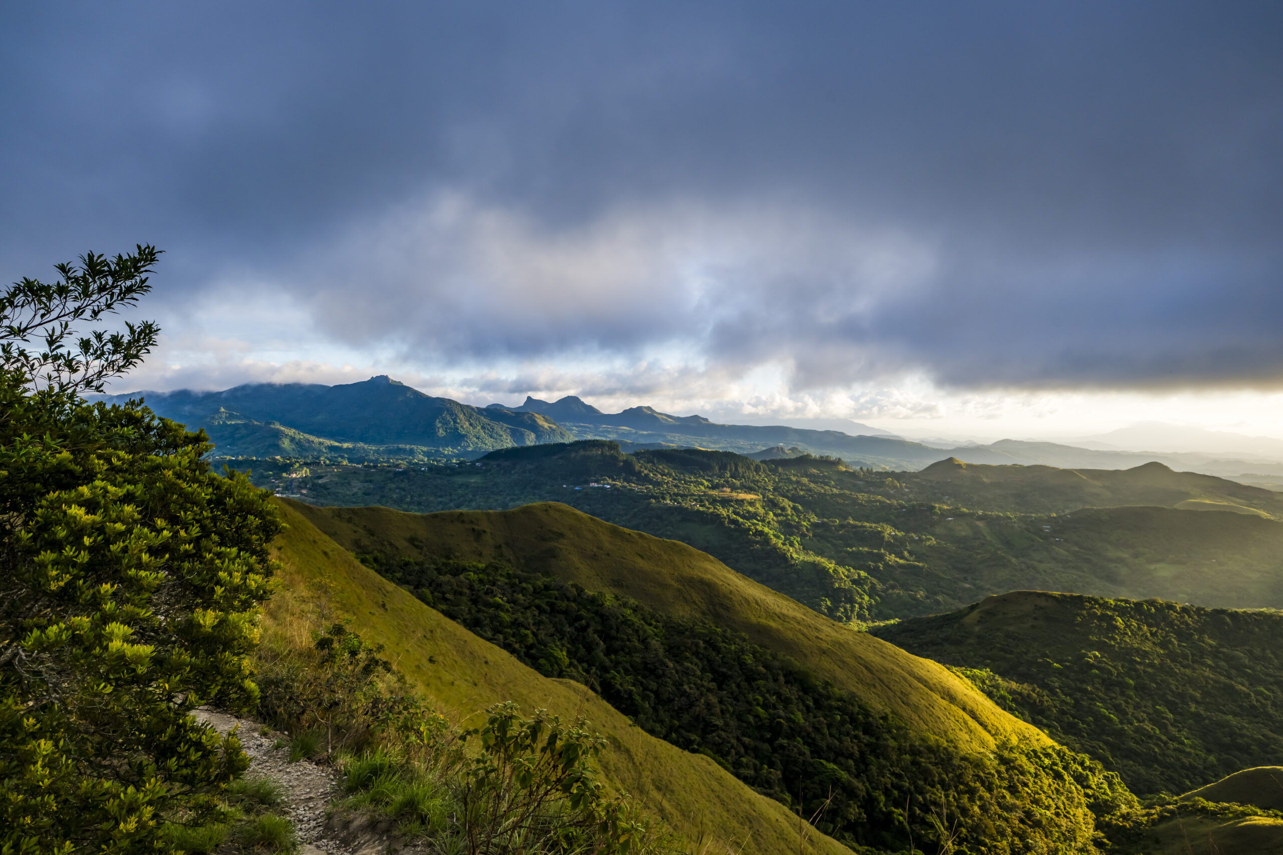 Bovenop waait het flink, maar we hebben regenjasjes bij ons tegen de wind. De zonsondergang is niet erg spectaculair en we lopen in de schemering terug. Net voordat het echt donker wordt zijn weer terug bij het appartement. De hond leidt ons prima terug door het bos. Bij de ene laatste waterval komen we nog een slang tegen, supertof, al is het meer een veredelde regenworm dan een slang, het is een zalmbuik racer slang.