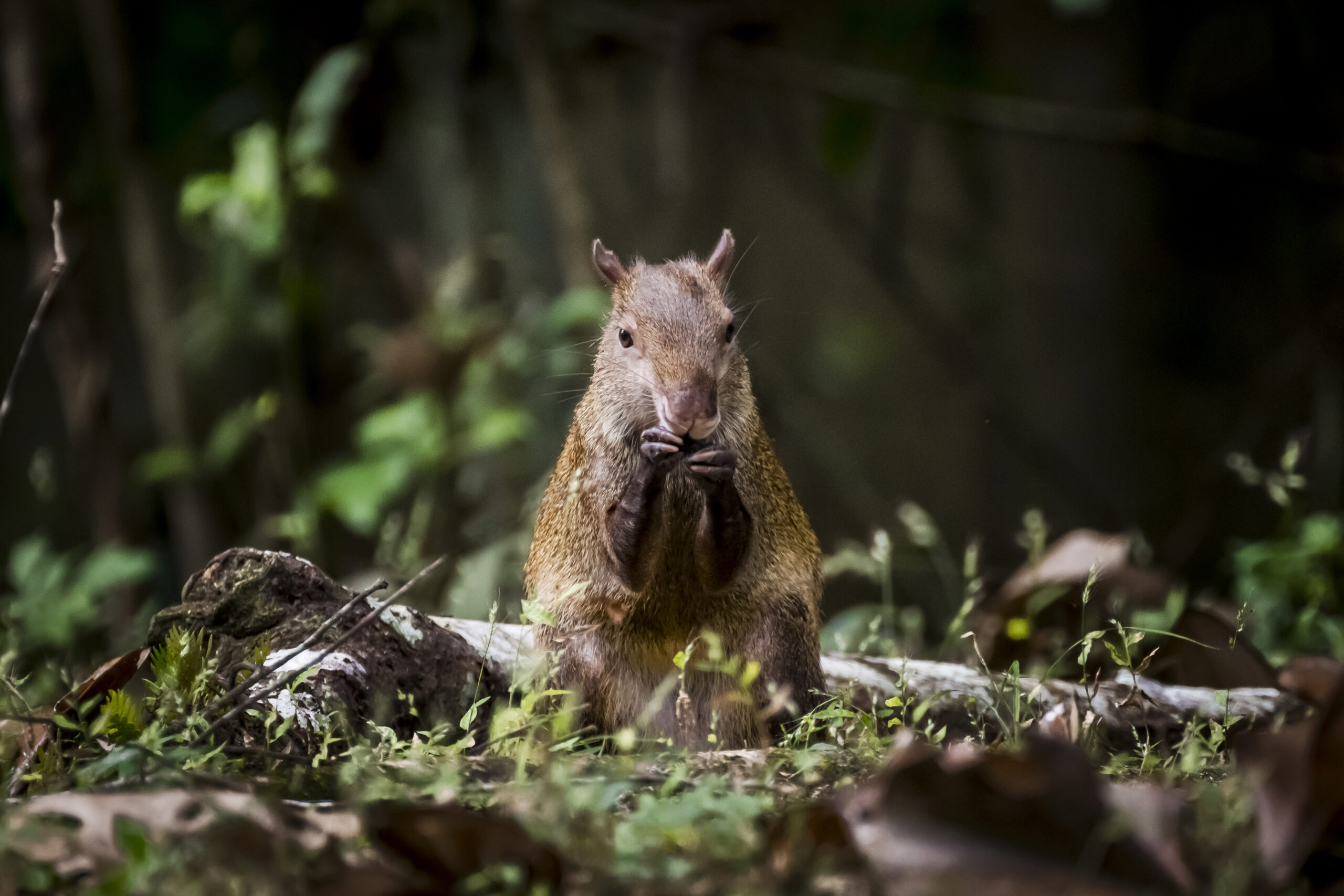 We horen brulapen keihard brullen, onwijs gaaf geluid. En dan zien we ze ook, meerdere keren vandaag zelfs. Bij het discovery centre is een splitsing, rechtdoor ga je verder met de pipelineroad of je gaat het park in waar ook birdfeeders hangen voor kolibri’s. Pipelineroad is 5 usd, entree tot dit park is 30 usd. We besluiten het park te doen. We zien diverse vogels die vuurmieren eten heel druk fladderen en pikken in de grond naar de mieren. de rufous motmot kijkt toe en ook een zwartborst baardkoekoek is druk in de weer met insecten, zelfs een eekhoorn is druk. Superleuk!. Voor de 2e keer vandaag zien we een agouti.