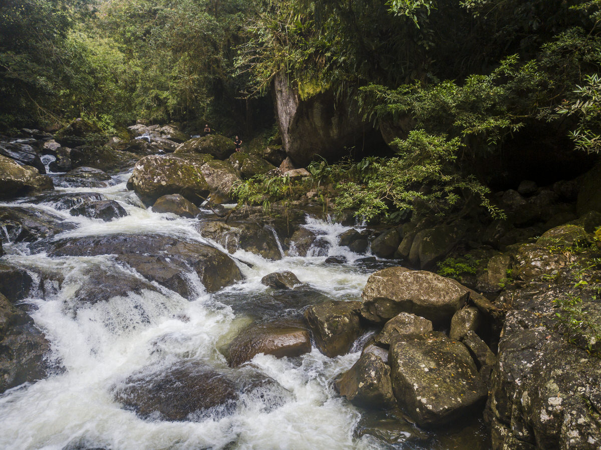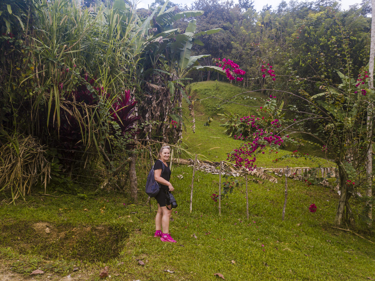 Het plaatsje zelf is niets bijzonders, we lunchen daar bij het enige restaurant en het eten is niet heel bijzonder. Dan rijden we terug richting Santa Fé. We stoppen langs de weg, we moeten de kaplaarzen aandoen, we krijgen beide een stok aan gereikt. Hiken naar de waterval. Dat was wel een hele hike van 2 minuten, haha. Om een foto te maken wordt precies aangewezen waar ik moet stappen op de stenen. Gooijert en ik dachten aan de waterval hike van gisteren, die was pas uitdagend, haha. De waterval is prachtig, maar blijkbaar is dat niet alles wat we zien, de waterval is nog een stuk hoger. Daar moeten we ook heen, maar goed een waterval is vooral mooi vanaf beneden niet vanaf boven. Er wordt nog een megagrote mier aangewezen en dat is een heuse terror-mier, als die je bijt heb je 6 uur lang pijn.