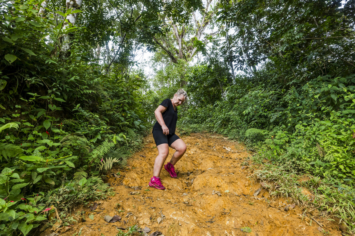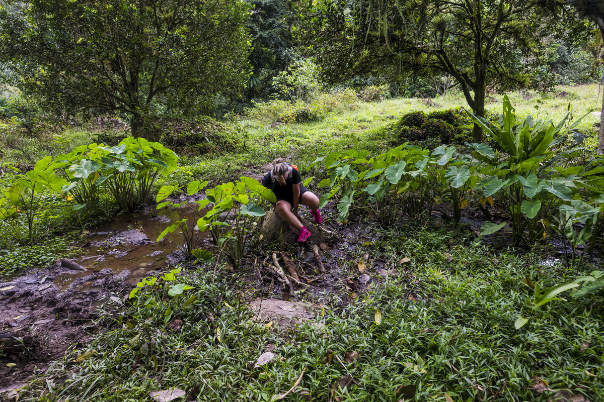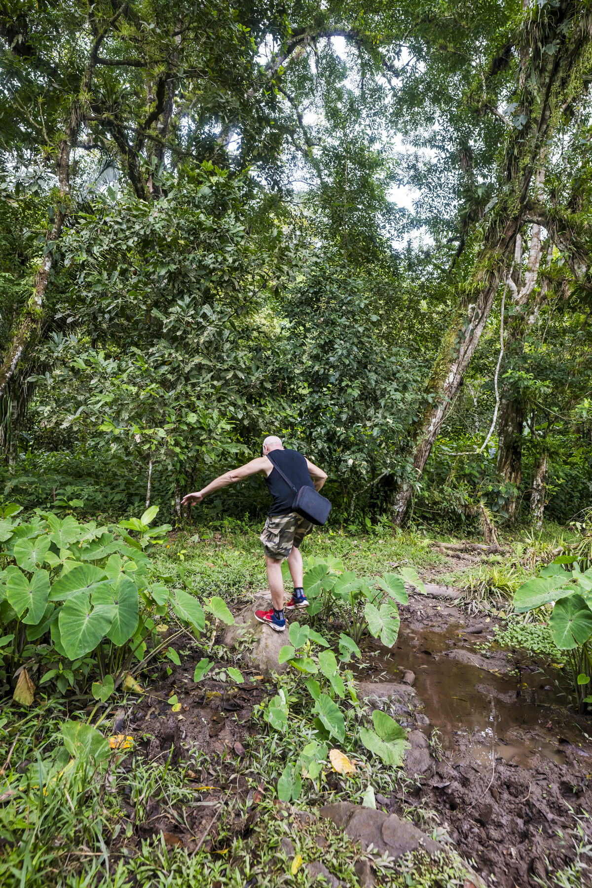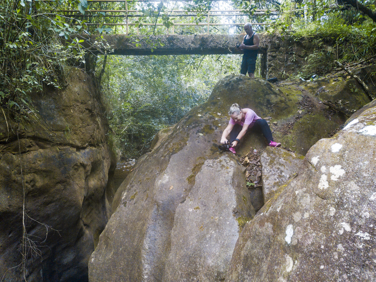 Bij ons appartement pikken we de macro en groothoeklens op en we gaan naar de watervallen. Eenmaal daar aangekomen is het begin van het paadje al mega blubberig en iets verder wordt het nog gekker. Dit wordt glijden en glibberen en zonder kaplaarzen niet te doen, met kaplaarzen ook gekkenwerk, dus deze 3 watervallen skippen we maar.