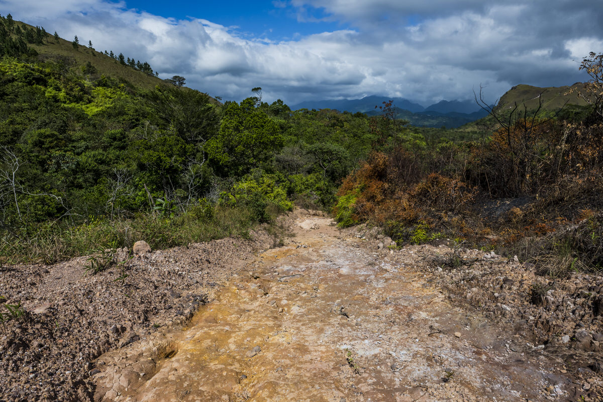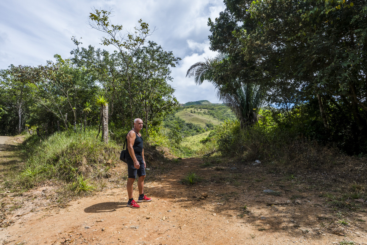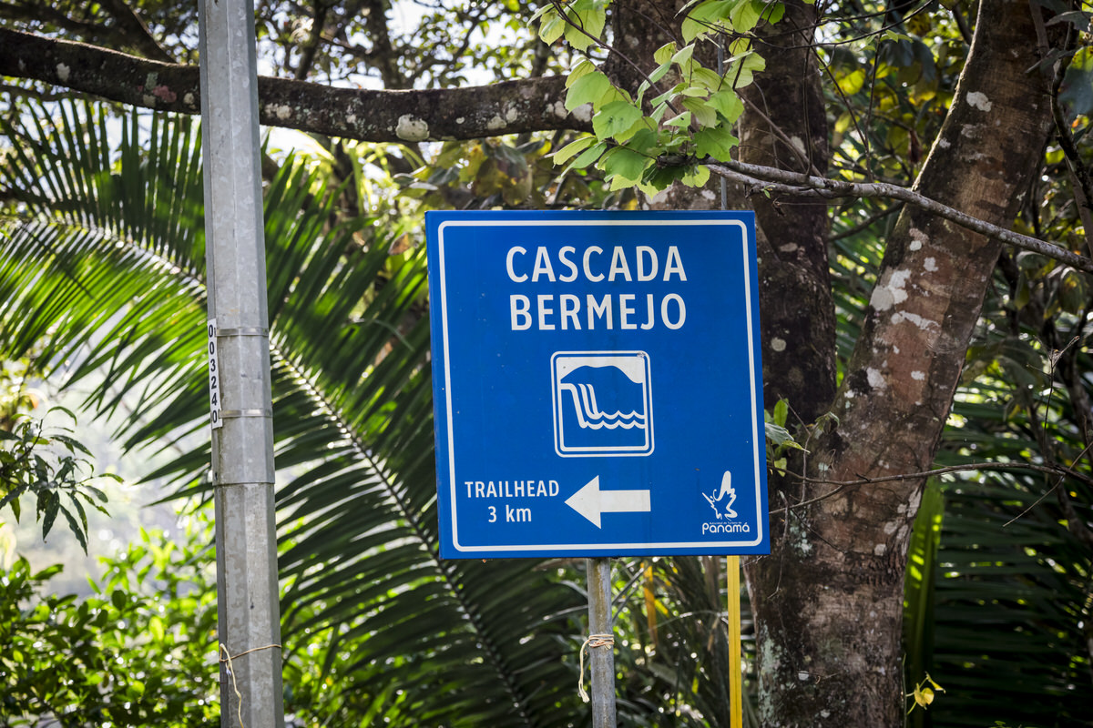 Eerst rijden we eerst een stuk Santa Fé uit, dan zien we een bord met daarop Cascada El Salto 5 km. Zover we kunnen rijden met Hyundai doen we op deze onverharde weg. Dan moet het nog 1 km naar de waterval zijn, dat kunnen we makkelijk lopen.