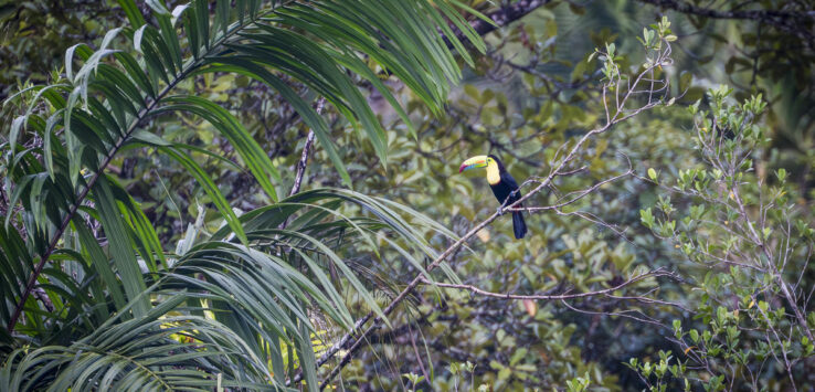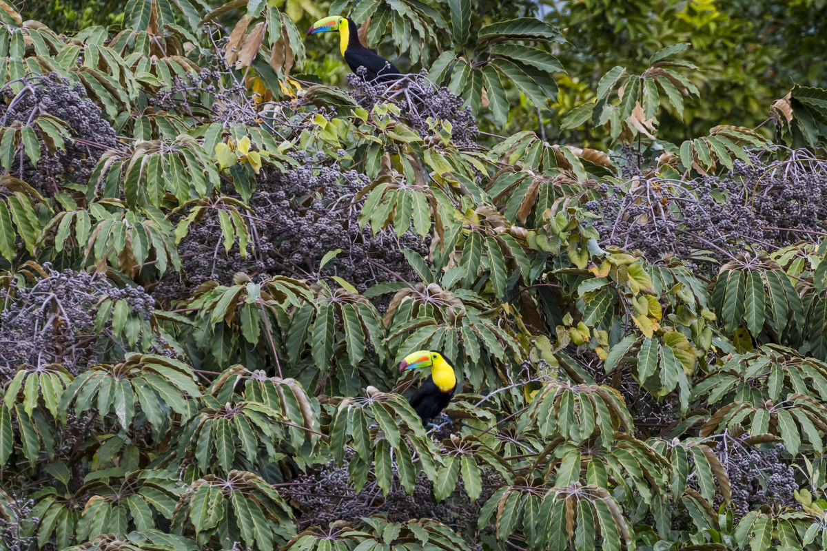 Als we terug rijden spot Gooijert 2 zwavelborsttoekans in de boom, GAAF!