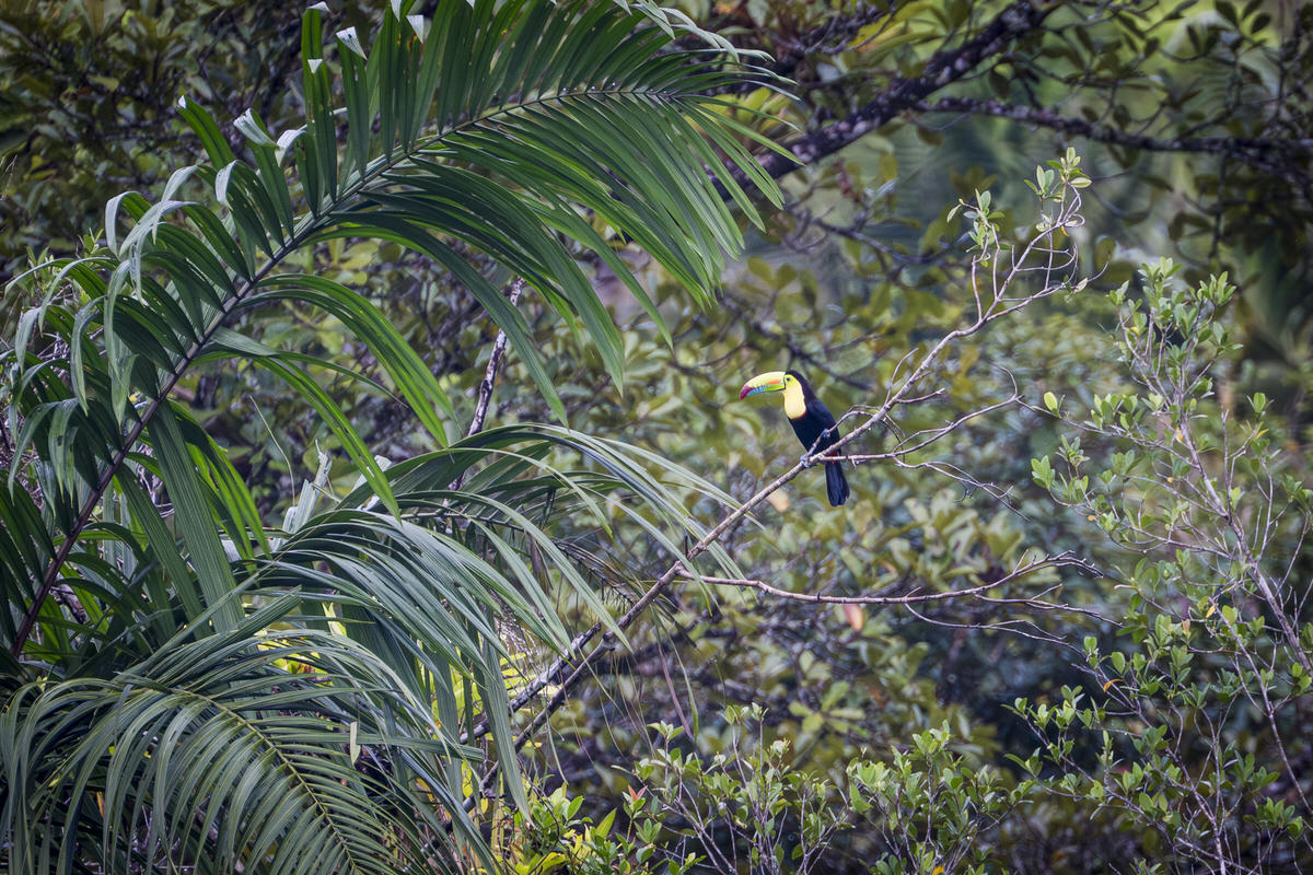 Maar goed we zien als eerste een eekhoornbaardkoekoek en warempel we zien ook een aantal zwavelborstoekans, ver weg, maar toch tof!