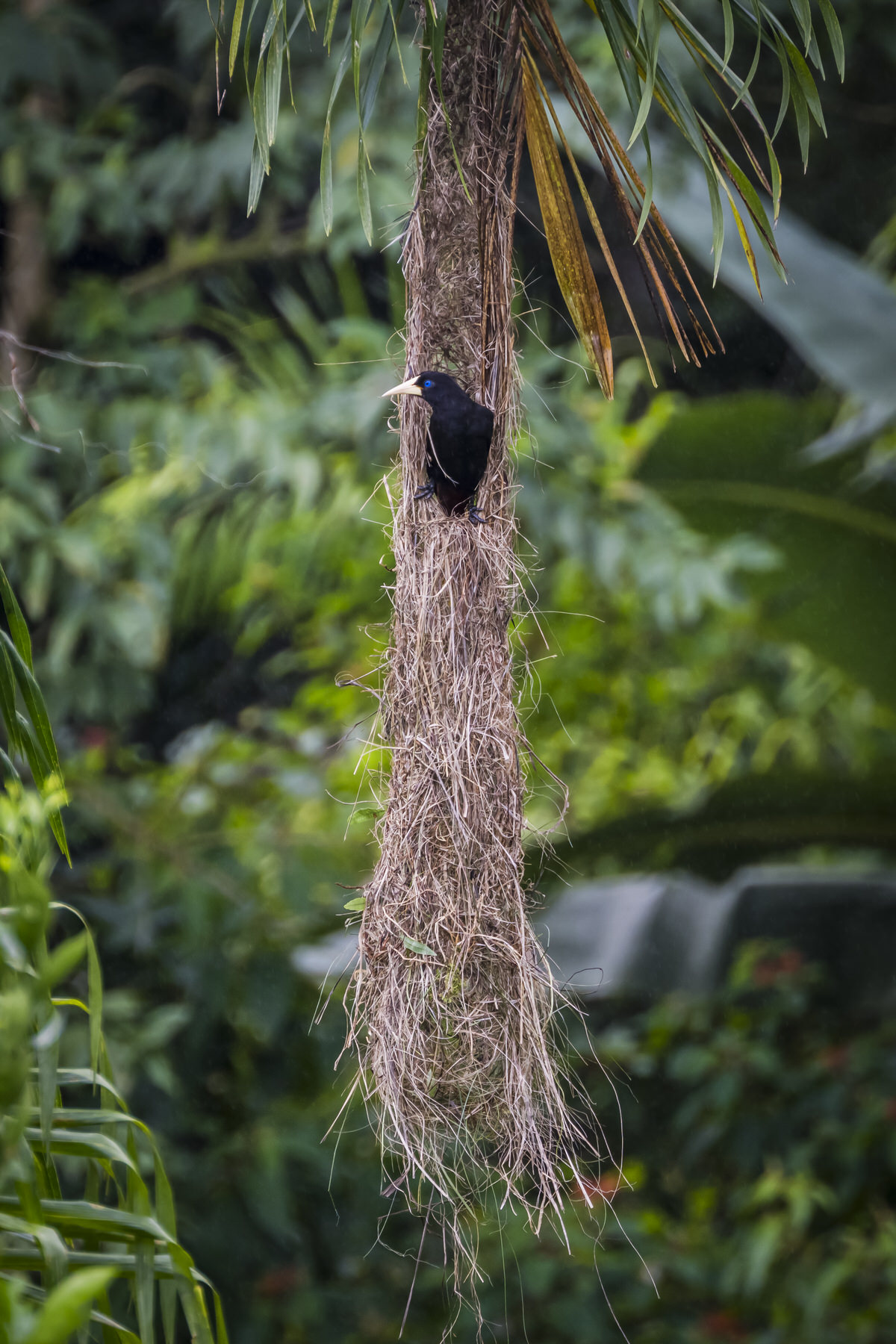 Kuiforopendola op zijn nest.