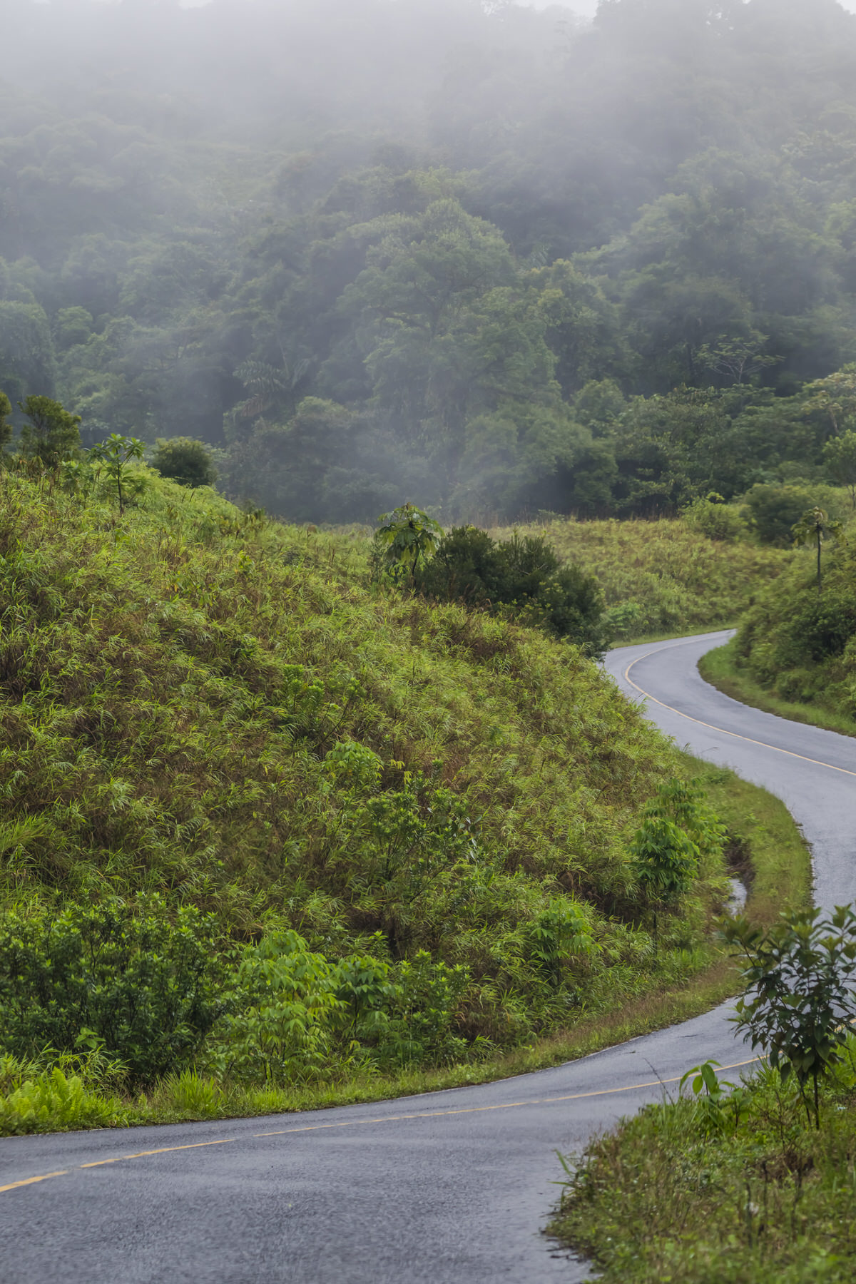 Eenmaal boven geloven we het verder wel en lopen weer naar beneden. Dan besluiten we om een stukje de weg te doen die we gisteren hebben gedaan richting Calbovaro. Het weer is slechter dan gisteren, heel veel regen. Wat dan weer wel spectaculaire landschappen geeft door de mist, regen en laaghangende bewolking.
