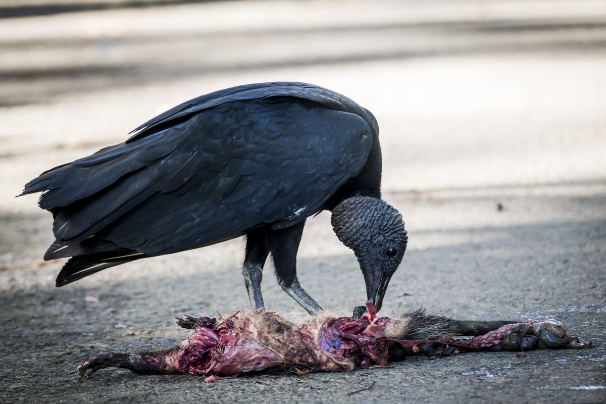 Kalkoengier bij aangereden opossum.