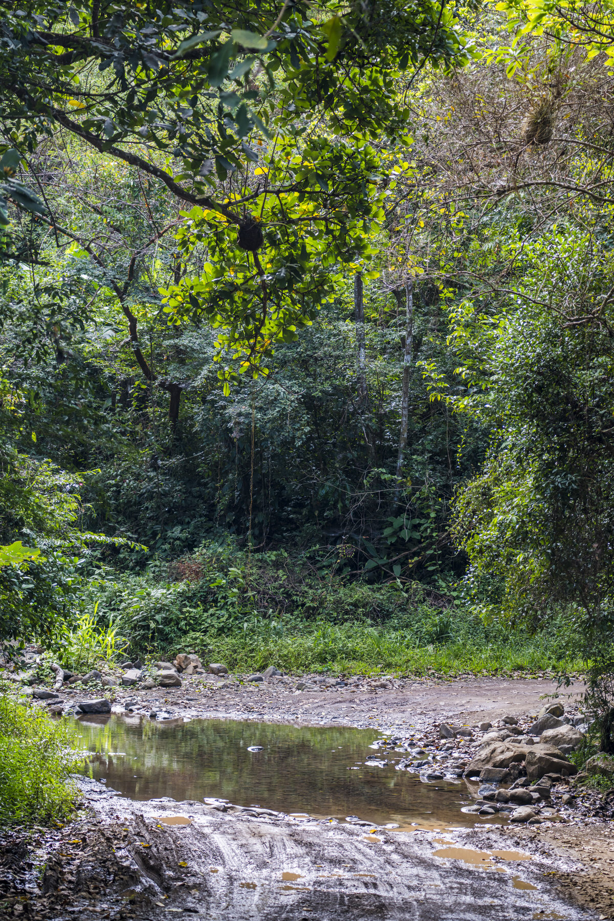 Nu is het zo dat waze of google het in Panama niet helemaal juist hebben qua hoogtes, aantal km en tijden. Na 2 km lopen zien we namelijk nog steeds geen waterval. Onderweg vragen we de weg aan een man die in een beek staat met zijn auto. Ik krijg een heel Spaans verhaal terug, ik begrijp dat we de camino (de weg) moeten volgen, dus dat doen we. Van de beste man krijgen we ieder 2 bananen, hoe aardig is dat. We lopen verder en verder, we passeren wel 6 rivierbeddingen, maar vinden geen waterval. Uiteindelijk geven we het op en lopen terug.