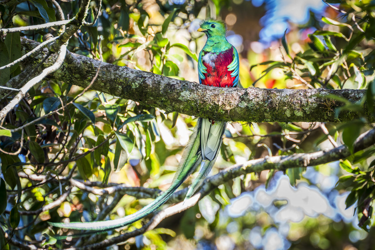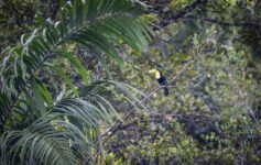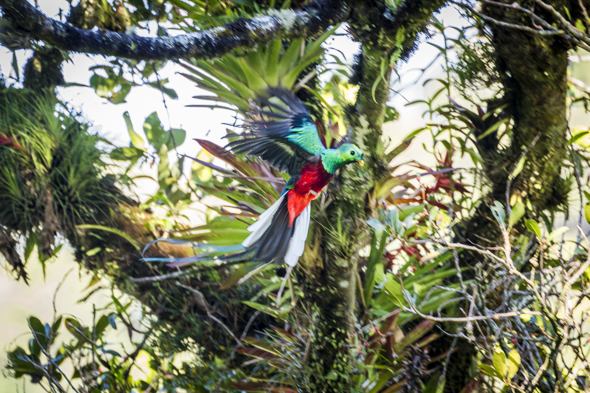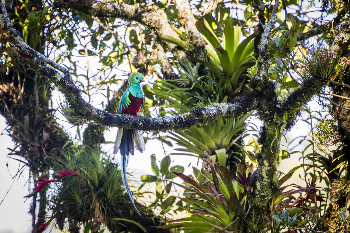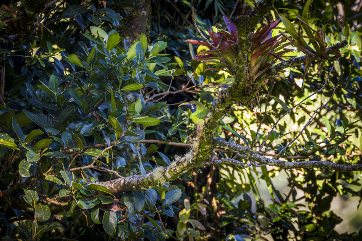 Een vogelgids inhuren is echt een aanrader, zij weten precies wanneer welke bomen vruchten geven en waar bepaalde vogels zoals de quetzal zich op dat moment kunnen bevinden. De kosten varieren tussen de 65 en 85 usd per persoon. We lopen nog wat verder en hoger want de vogel laat zich nog niet in volle glorie zien. En als we bovenaan staan, zijn we ook wat dichterbij, de quetzal beweegt van takje naar takje en vliegt uiteindelijk naar andere bomen. Het is echt prachtig, we horen er meer en om een lang verhaal kort te maken, uiteindelijk zien we 3 mannetjes rondvliegen en 1 vrouwtje. Het vrouwtje kan ik helaas niet op de foto krijgen. In dezelfde boom als de quetzal zit ook nog een emerald toucanet. Dit is een kleinere toekansoort, prachtig!