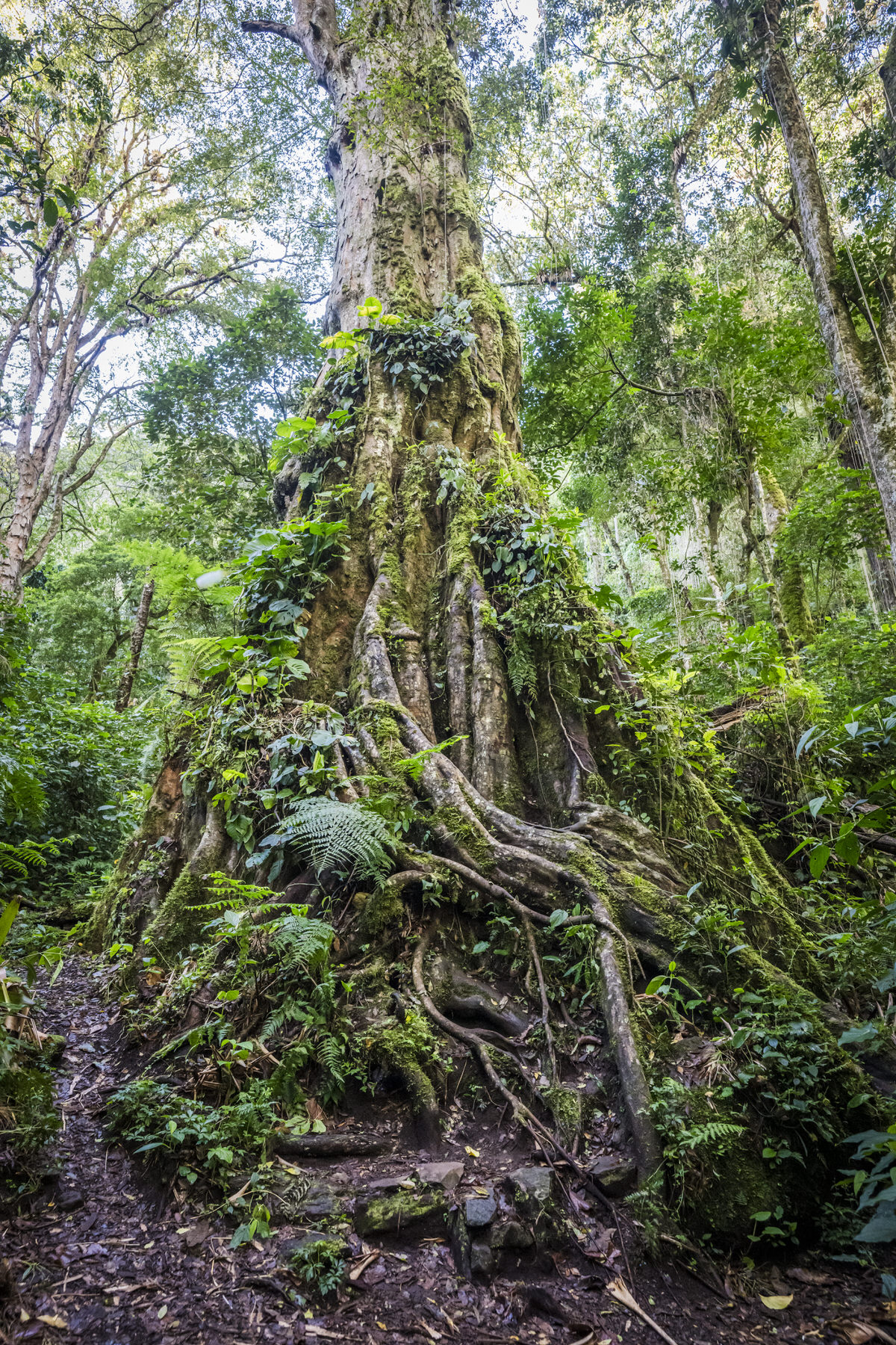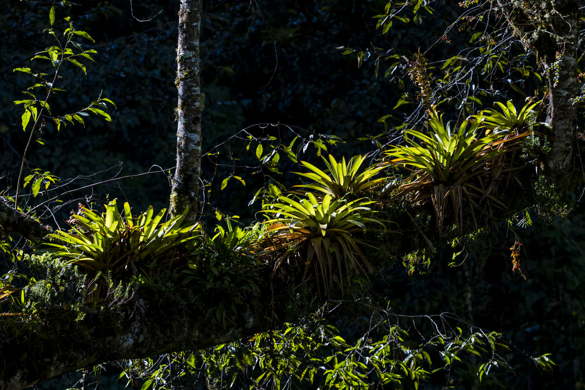 Zeer teleurgesteld keren we om en lopen terug. Werkelijk geen enkele vogel gezien maar alsnog 5 km gelopen. Als we bijna terug zijn bij de auto begint de zon te schijnen. Het regenwoud dampt in de zon en de bromelia’s glimmen van de regen en het zonlicht.