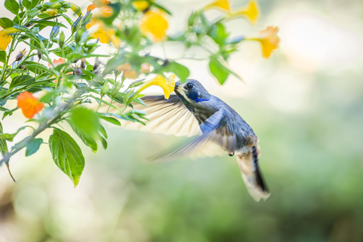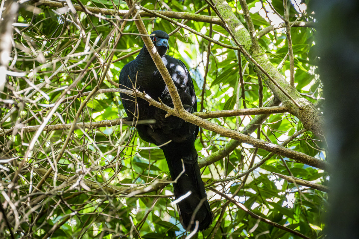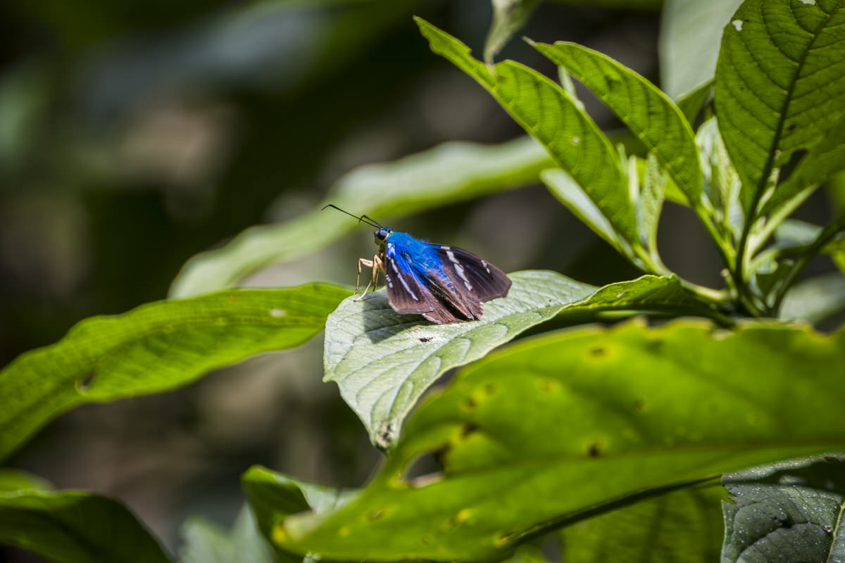 Als we verder omhoog lopen, wijst de gids ons op een nestje van een kolibrie en het mannetje zit vlakbij het nest op een takje. Deze kolibrie is 6,5 cm en 1 van de kleinste kolibries in Costa Rica en Panama. In het nestje zitten 2 piepkleine kuikentjes en het mannetje heeft waanzinnige reflecterende kleuren als de zon er op de juiste manier op schijnt.