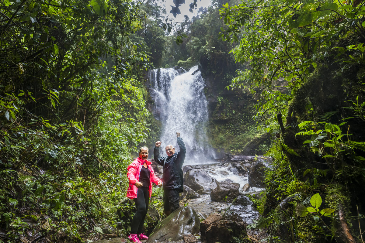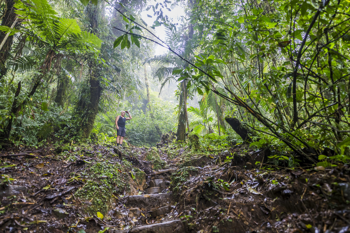 Het is meer een watermuur. Dat laatste stukje naar de waterval was nog het meest uitdagende van de hele trail. Onderweg zien we wel wat vogels en brulapen en we horen bizarre geluiden, maar helaas geen quetzal gevonden. BALEN!