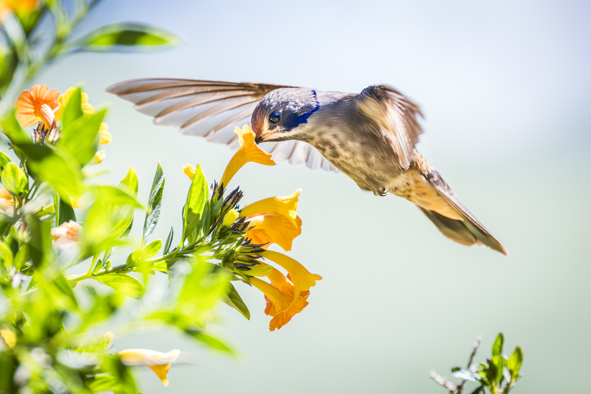 Bij het appartementje hoor ik een kolibrie voorbij zoeven en dan hoor ik binnen wat geratel….. Ik loop naar binnen om te kijken wat dat geluid is en waar het vandaan komt. Het blijkt dat er een kolibrie bij ons naar binnen is gevlogen en die probeert door het keukenraam naar buiten te vliegen. Heel voorzichtig kan ik het kleine vogeltje pakken, hij laat het toe gelukkig. Ik voel de vleugeltjes al tekeer gaan als ik naar buiten loop, ik vouw mijn handen open en hij vliegt als een raket weg. De birdfeeder hebben ze in 3 dagen leeg gezopen, de eigenaar maakt nieuw suikerwater zodat de suikerjunkies weer kunnen slurpen., haha.