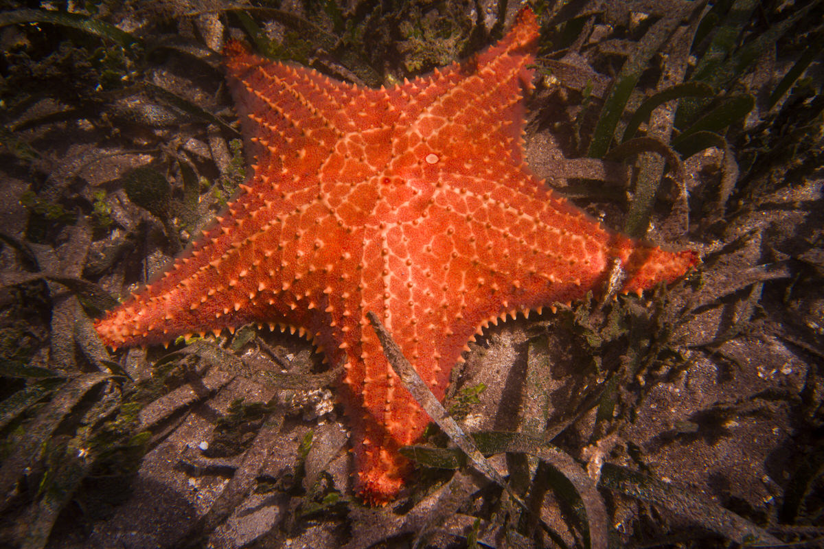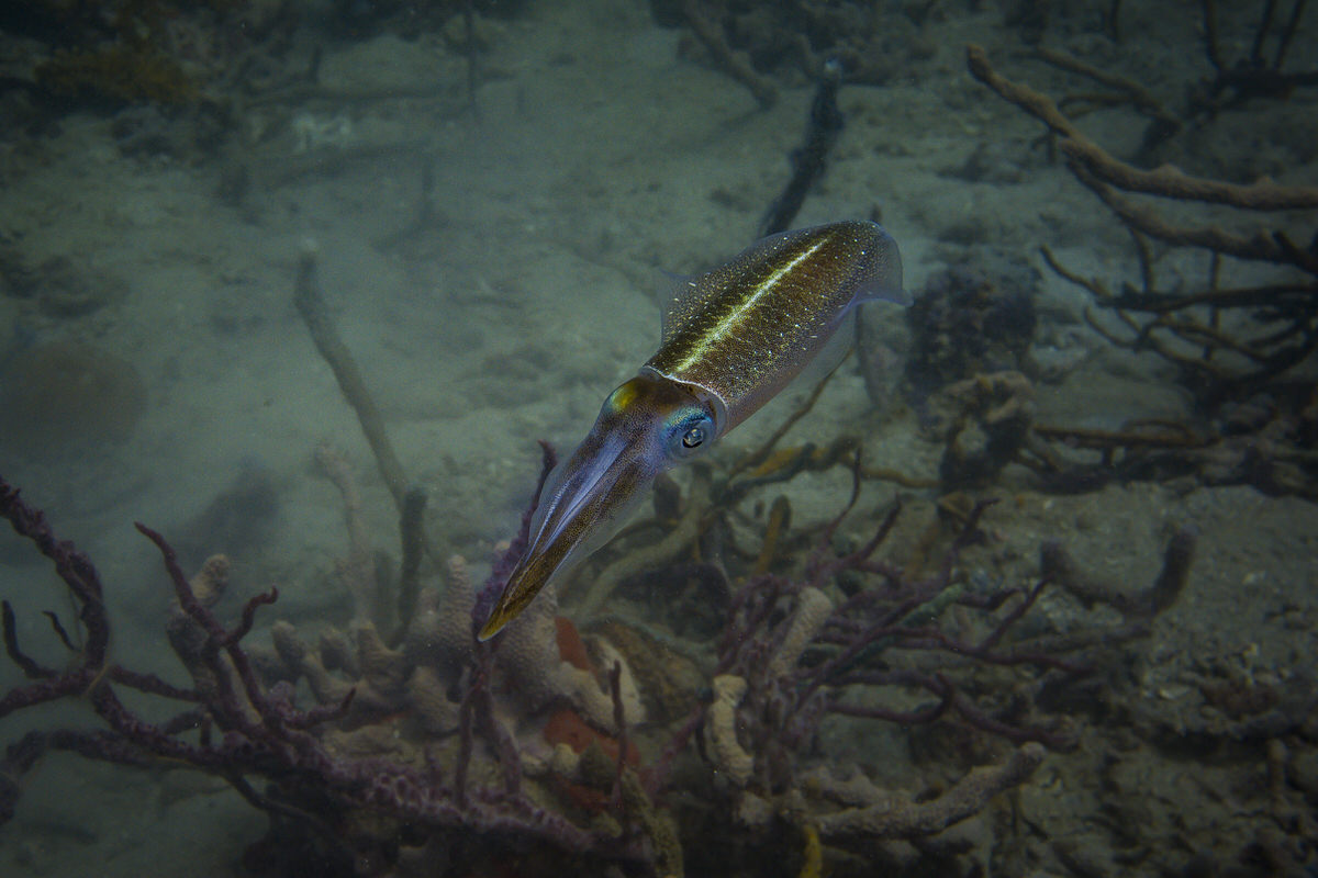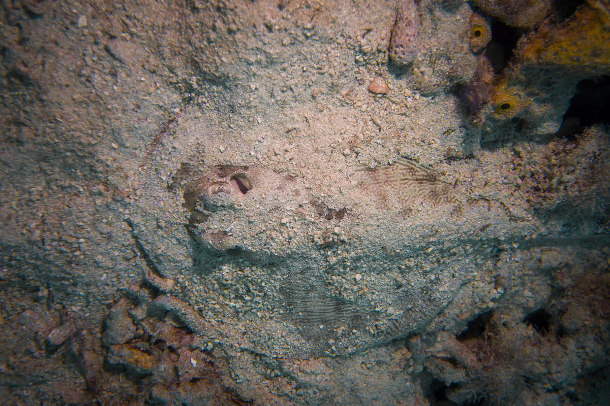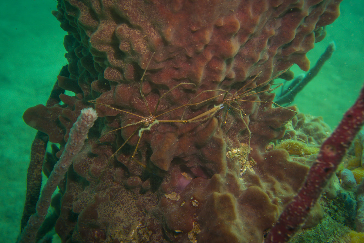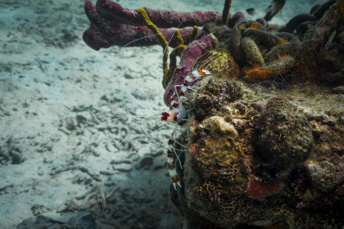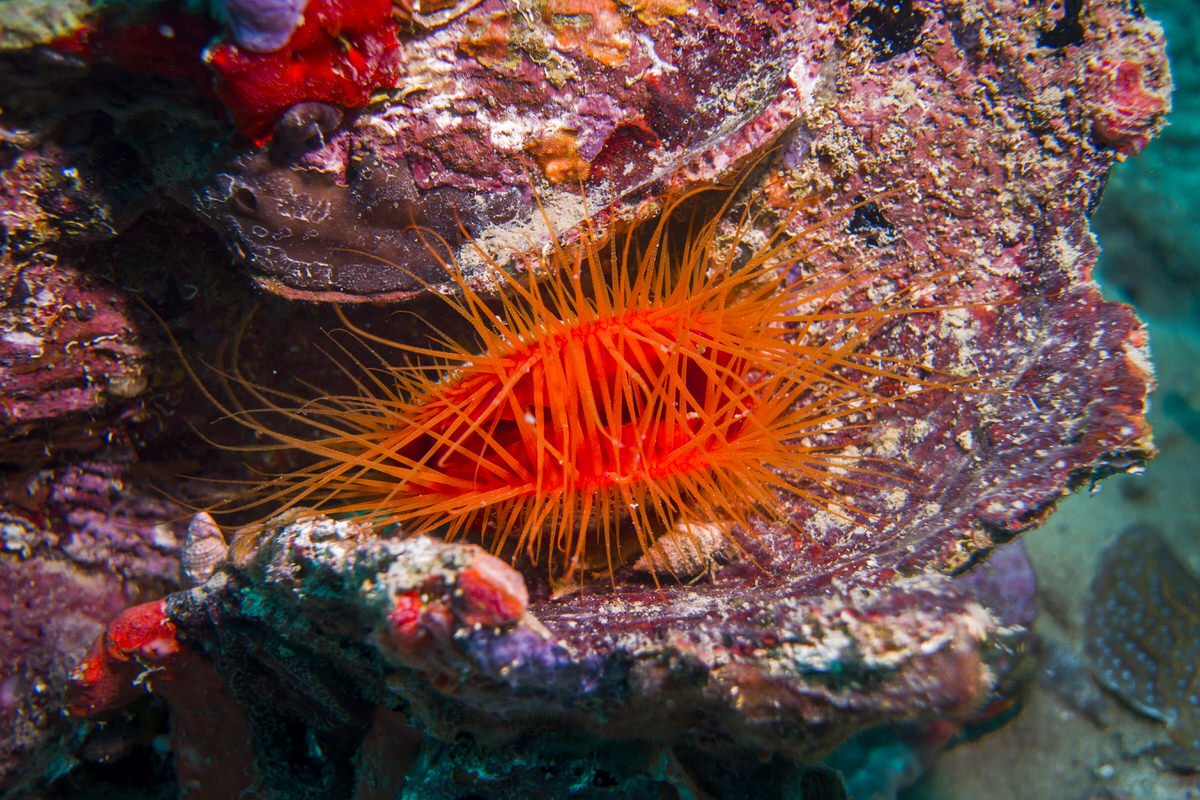 Naast de zeesterren zien we nog een baracuda voorbij zwemmen en ook is hier koraal te vinden met kokerwormen.