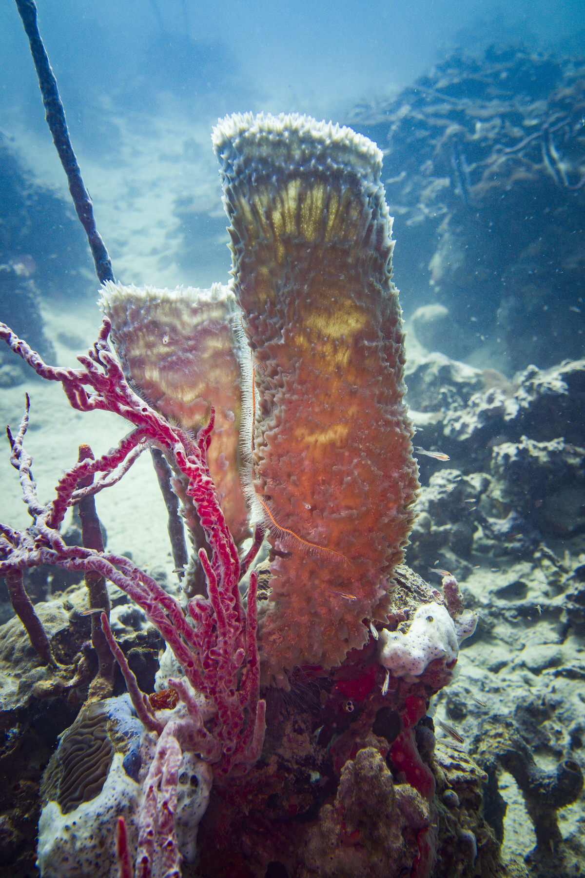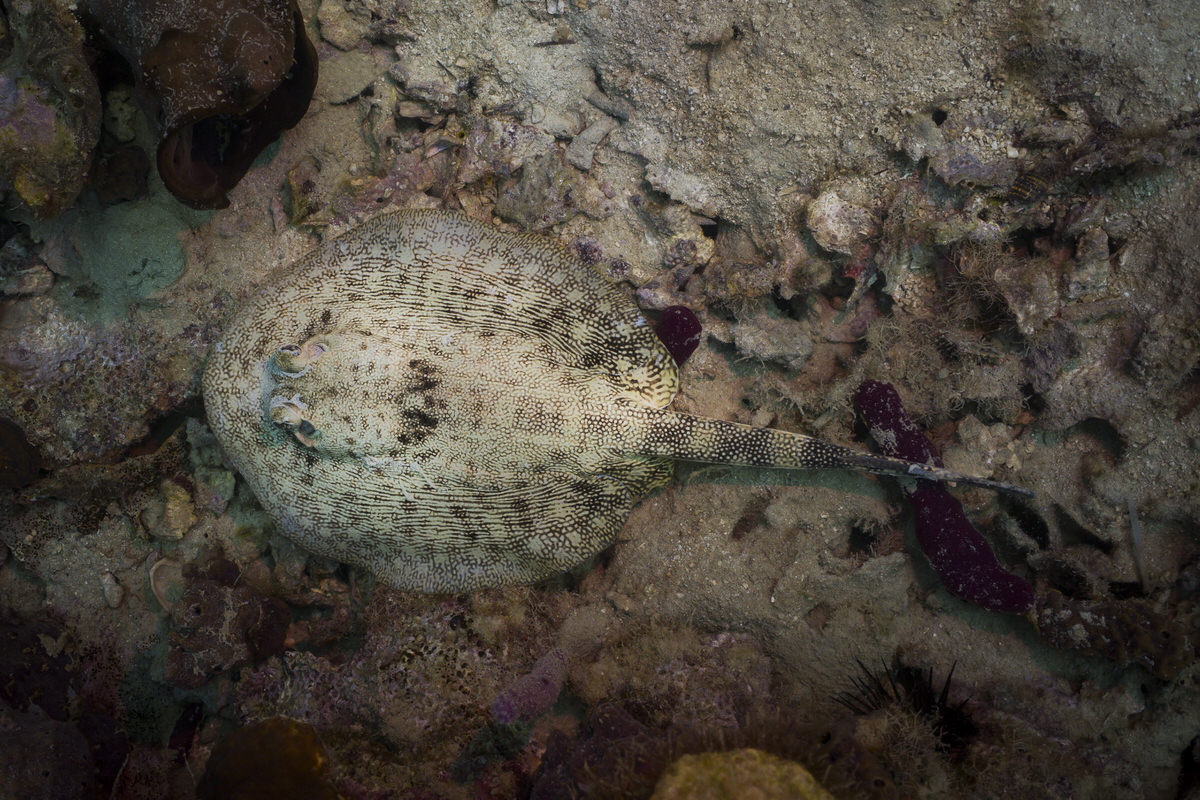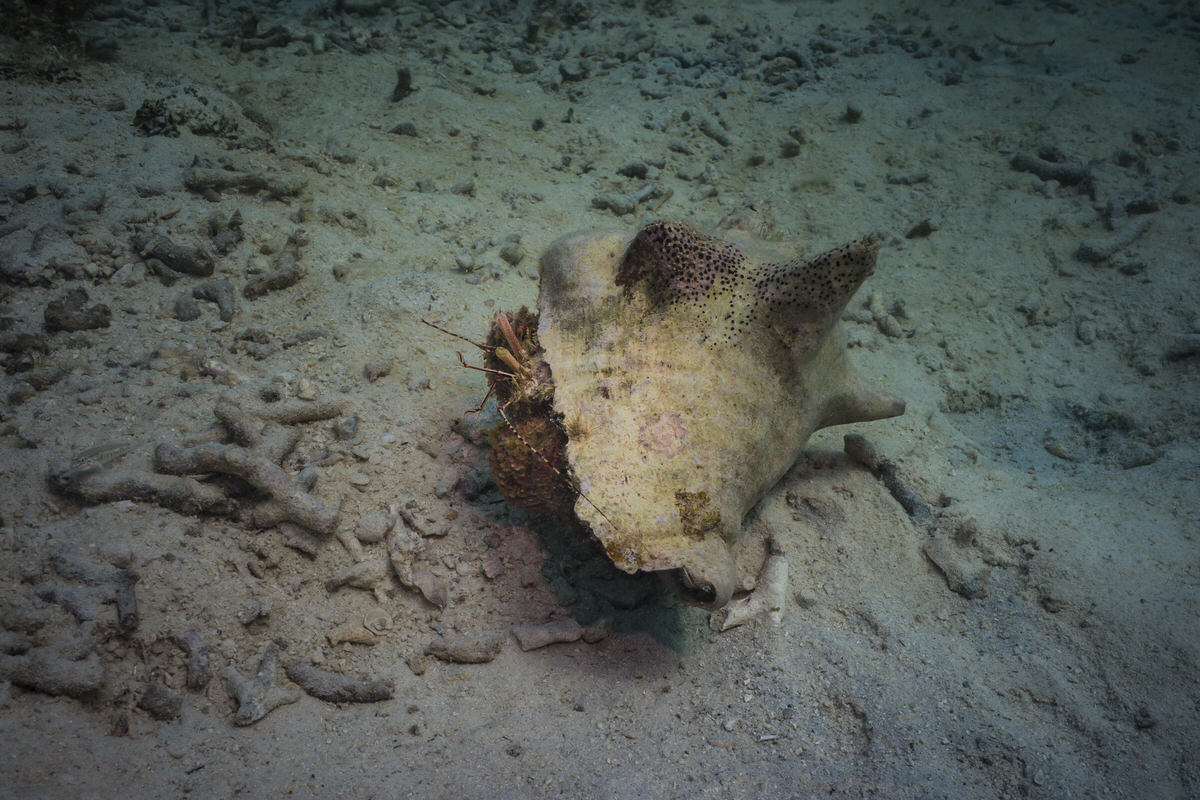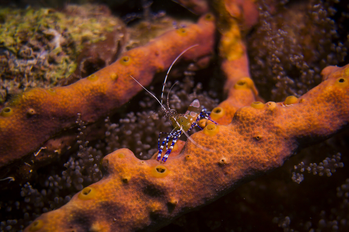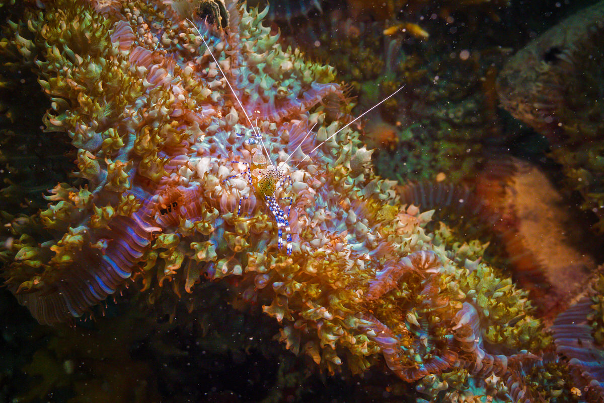 Naast de zeesterren zien we nog een baracuda voorbij zwemmen en ook is hier koraal te vinden met kokerwormen.