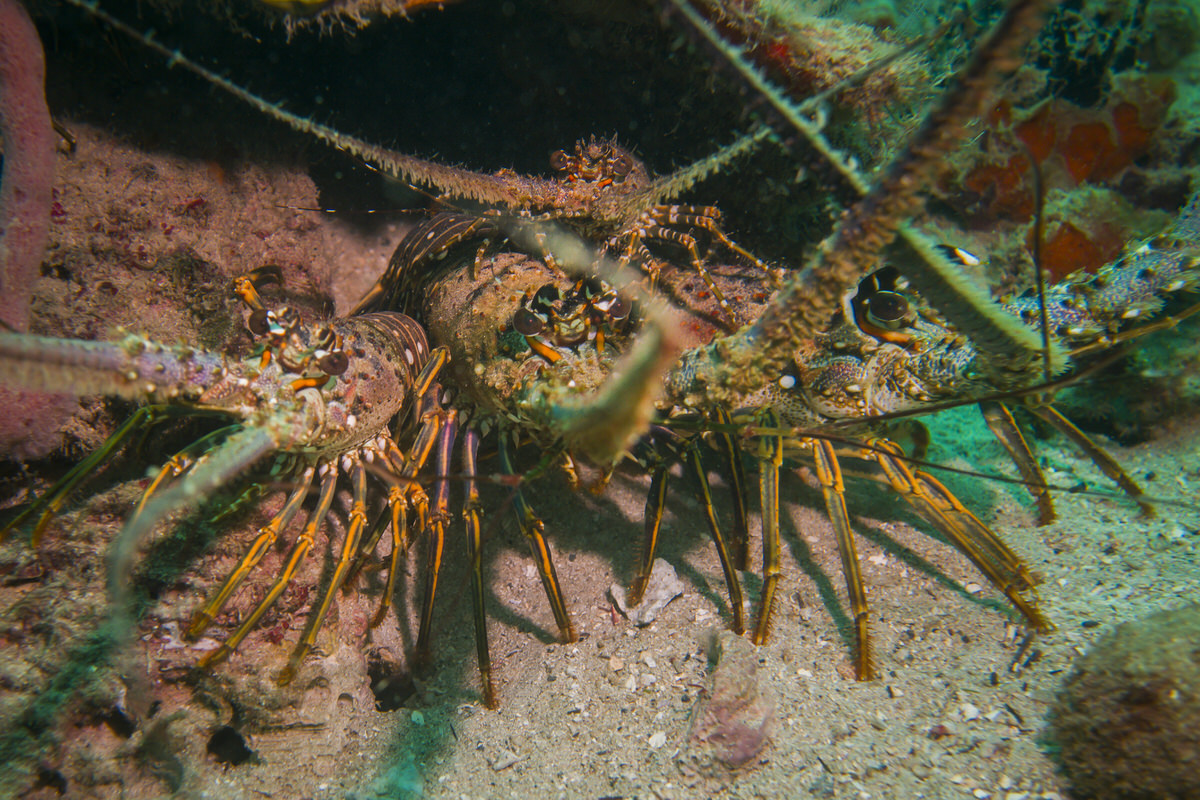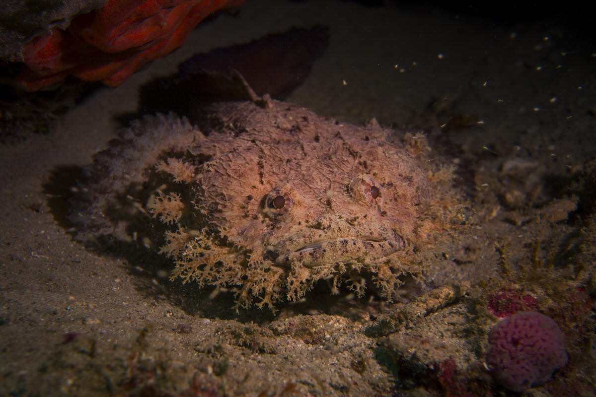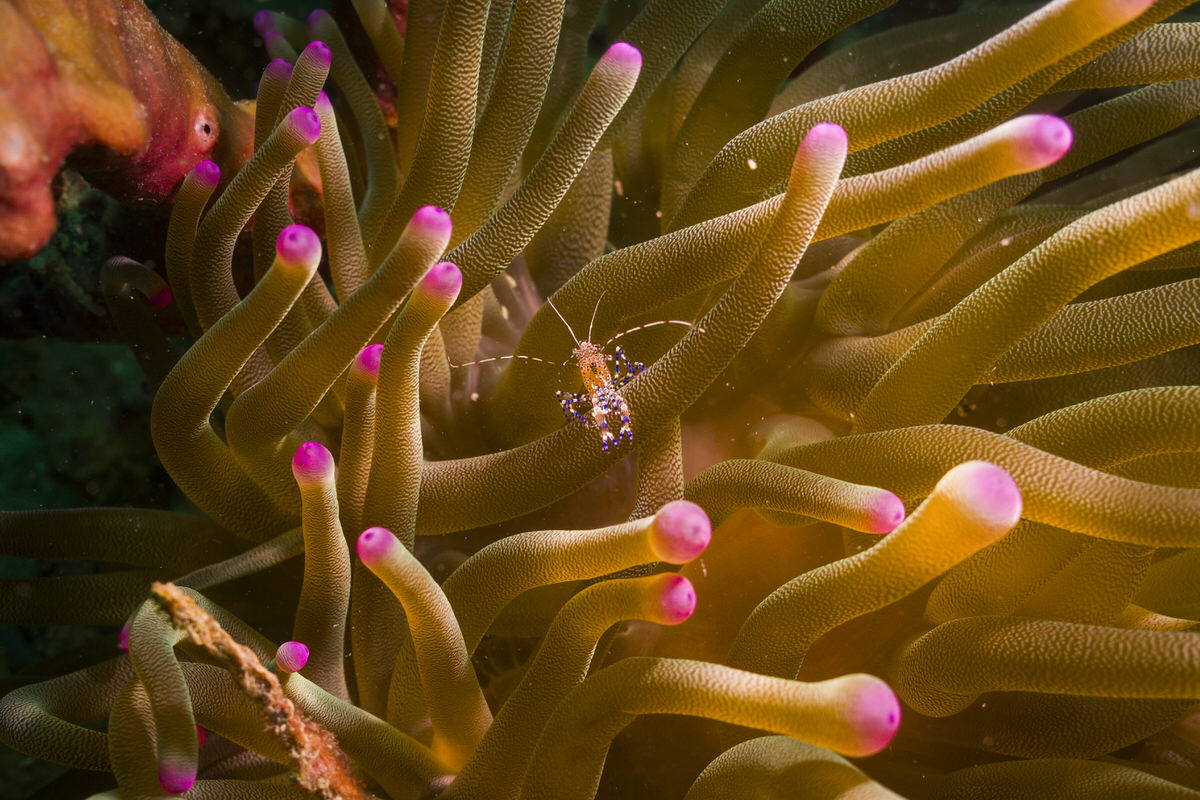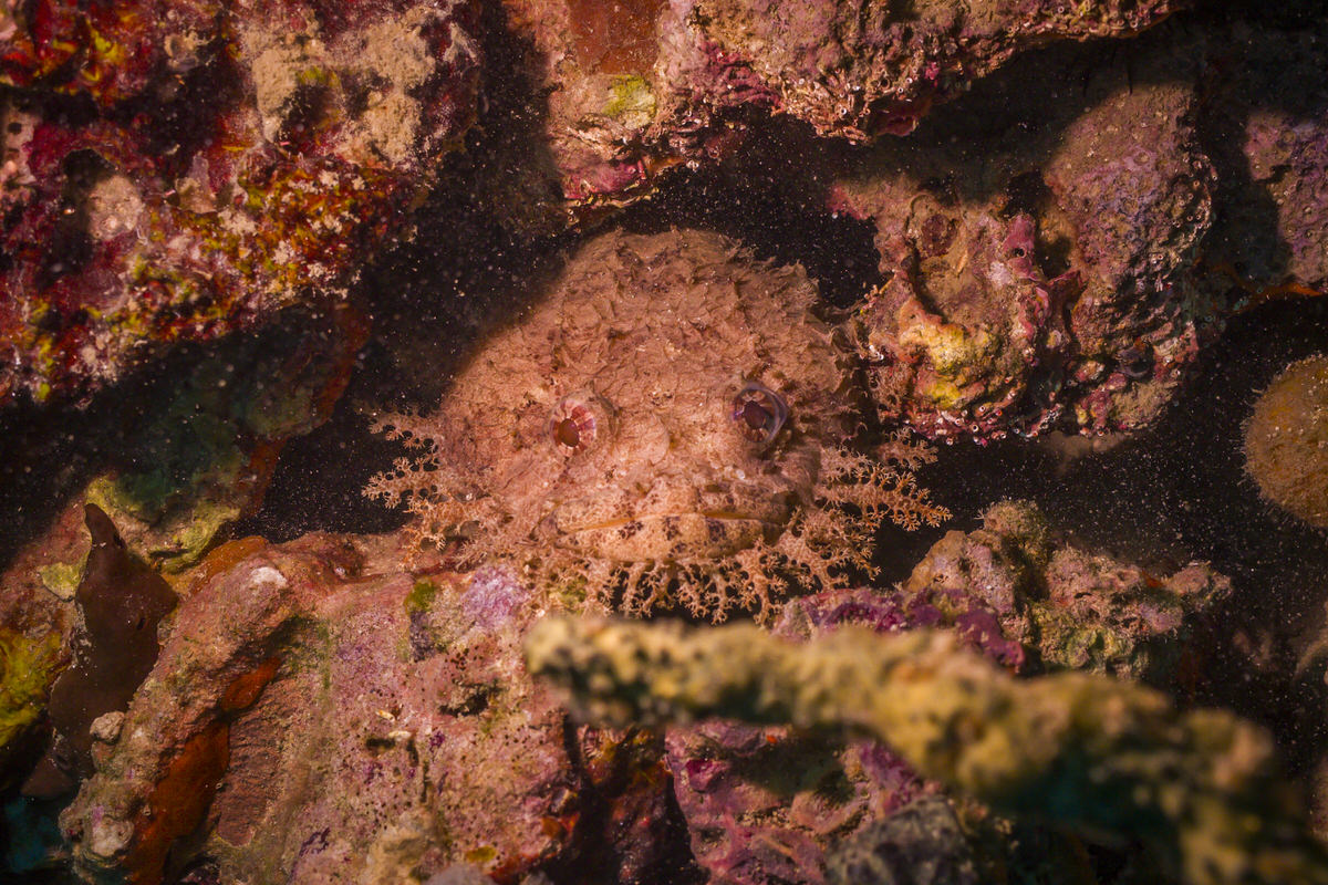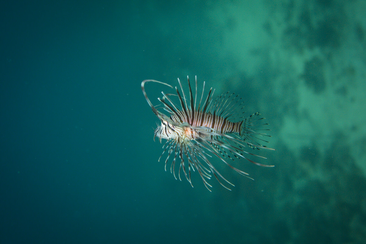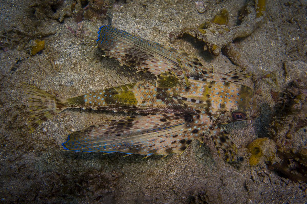 Naast de zeesterren zien we nog een baracuda voorbij zwemmen en ook is hier koraal te vinden met kokerwormen.