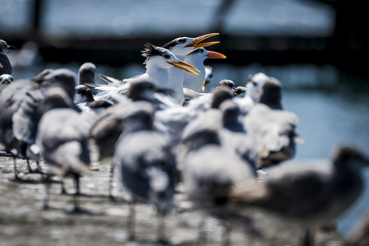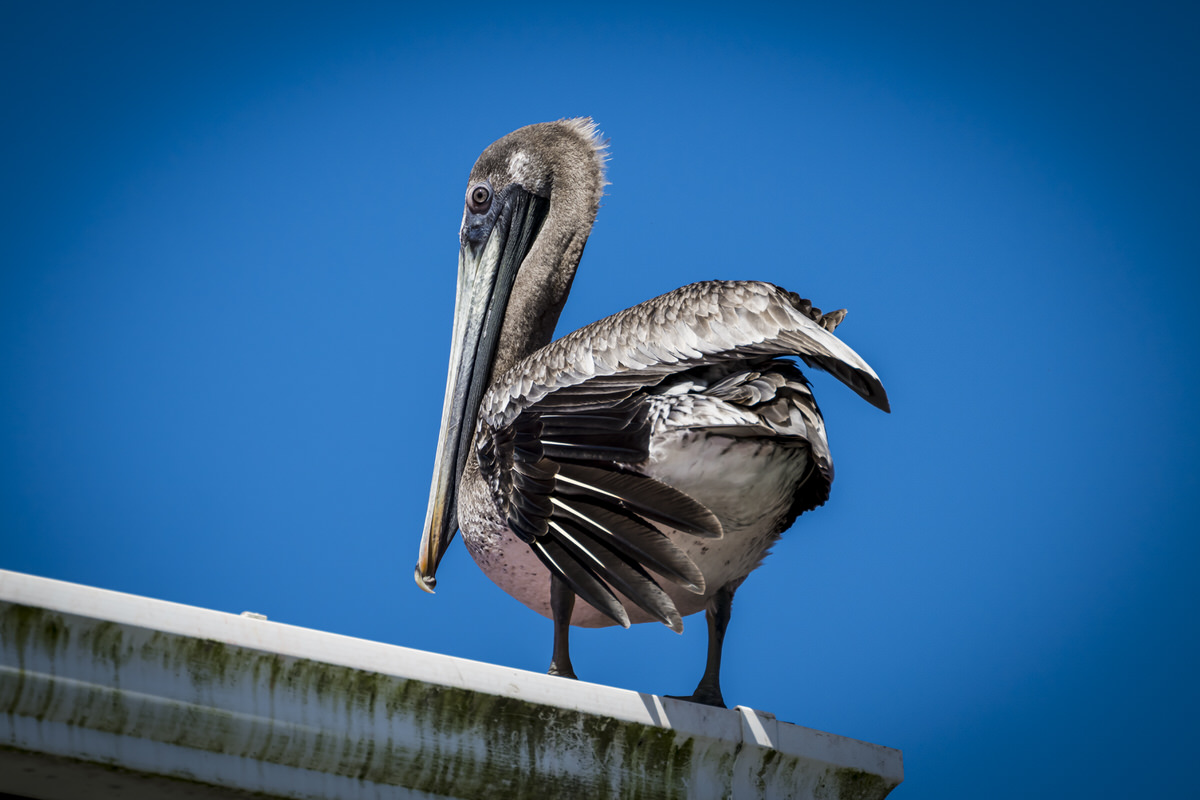 ‘s Middags maken we nog wat foto’s van de pelikanen, deze keer is de enige pelikaan met de gelige kop er ook bij. Wat een prachtige vogel!