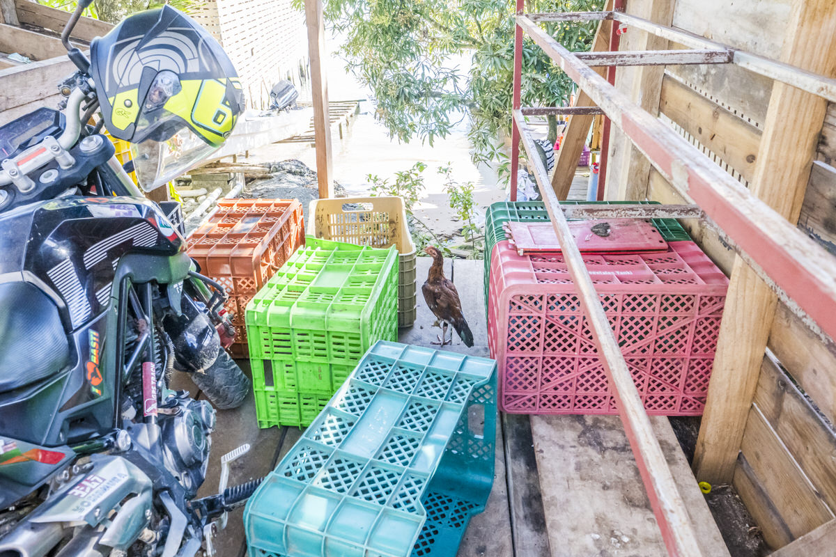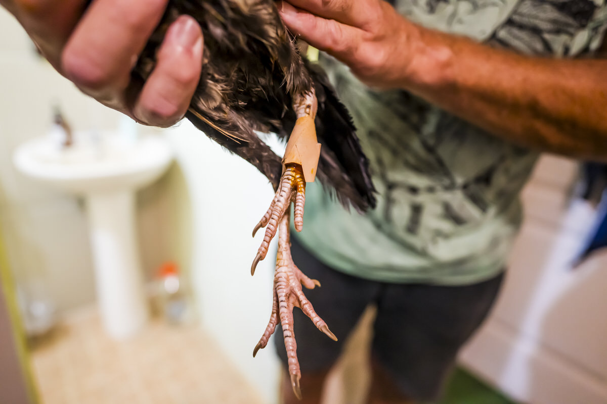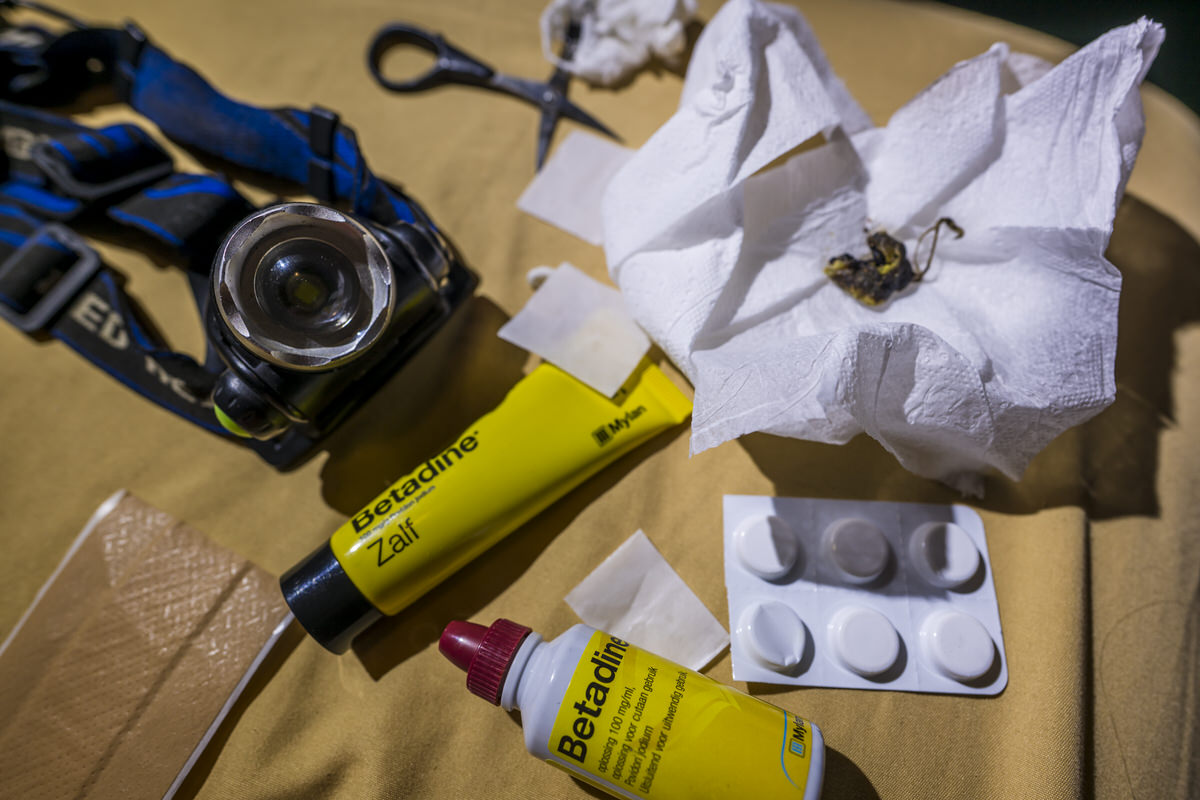 Voor ons pleisterkippie hebben we banaan meegenomen, daarin verstoppen we paracetamol, ze eet van de banaan, of ze de paracetamol ook op eet weten we niet. We zeggen gedag en hopen op het beste voor haar.