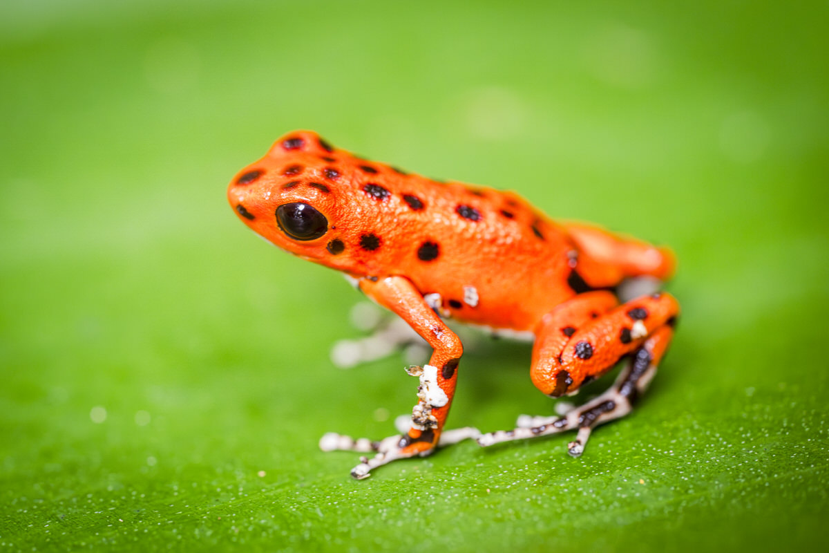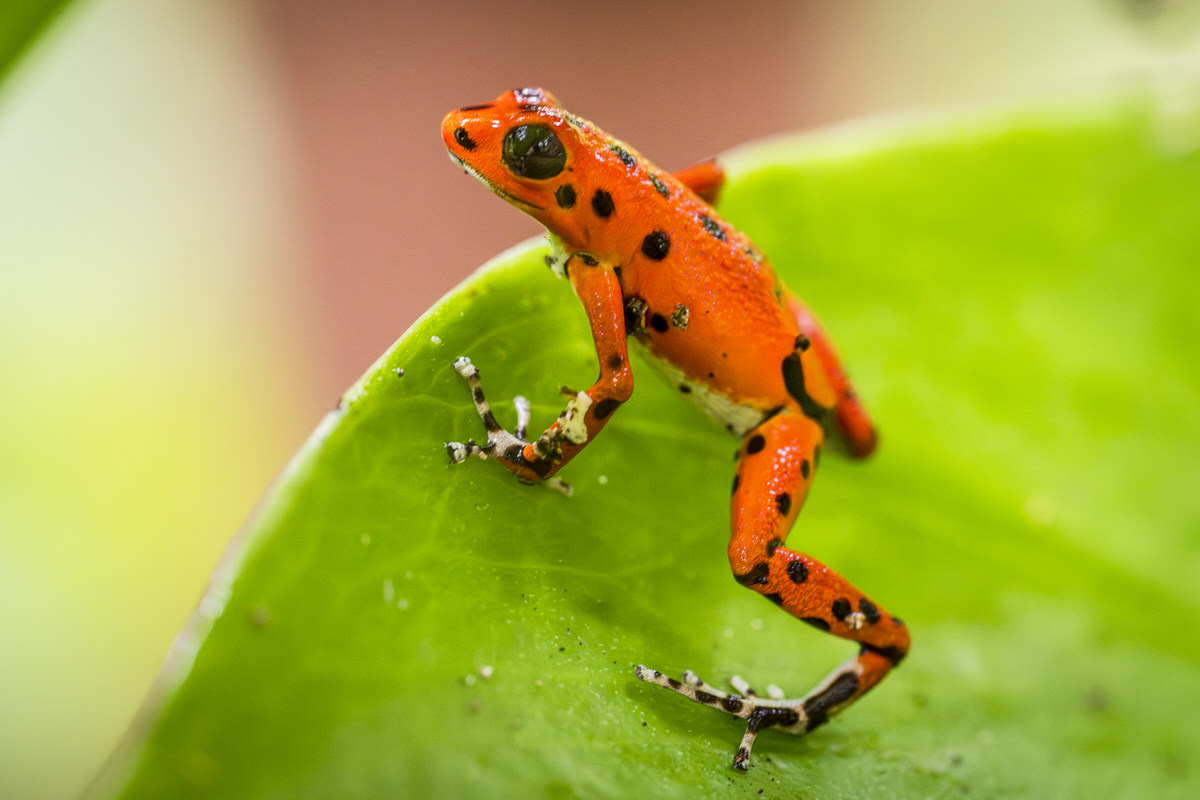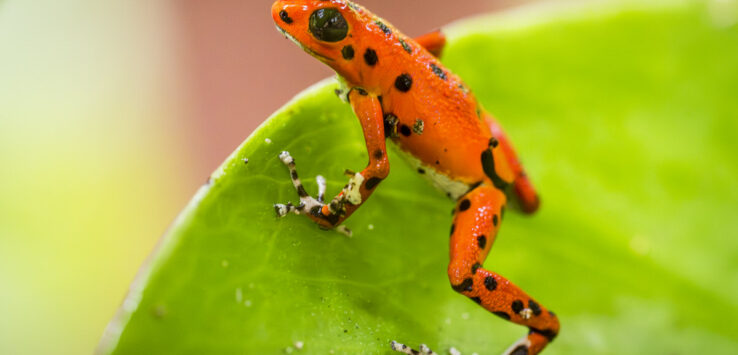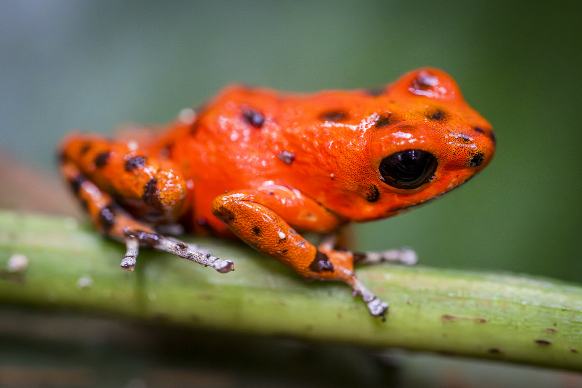 Vet zeg, dan spot ik er ook een paar, maar Gooijert ziet ze beter dan ik. We zien oranje, rode en gele kikkertjes. Ze zijn 1 à 1,5 cm groot deze pijlgifkikkertjes. Ik fotografeer erop los en Gooijert ziet nog een gele, als ik zie probeer te fotograferen wordt ik keihard gebeten door een mier in mijn kleine teen. Geen grap, ik gil van de pijn en besluit dat ik genoeg foto’s heb. De muggen nog tot daar aan toe maar als mieren je gaan bijten is het niet leuk meer. Op de terug weg zien we nog de white face monkey’s en nu zien we in de kaaimanplas, 3 kleine kaaimannen liggen.