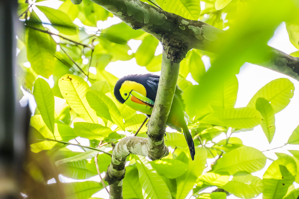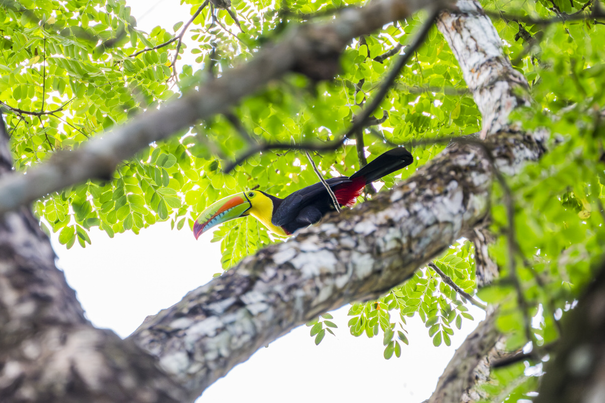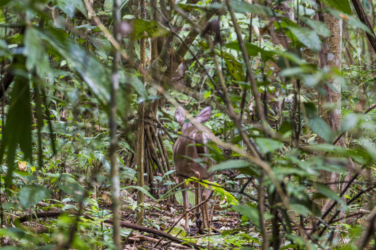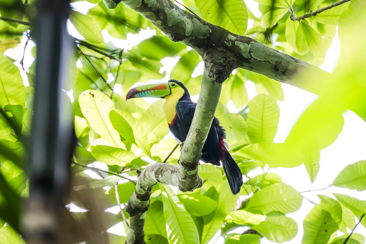 Vorige keer zagen we luiaards, een agouti en diverse vogels. Nu zien we geen enkele luiaard, zelfs niet als iemand tegen ons zegt: om de hoek op de top zit een luiaard…. die zien we niet. Wat we wel zien deze keer. Een stuk of 6 zwavelborsttoekans, brulapen, een hert, een leguaan en een groepje roodnektamarins. Die laatste zijn heel kleine en vliegensvlugge aapjes.