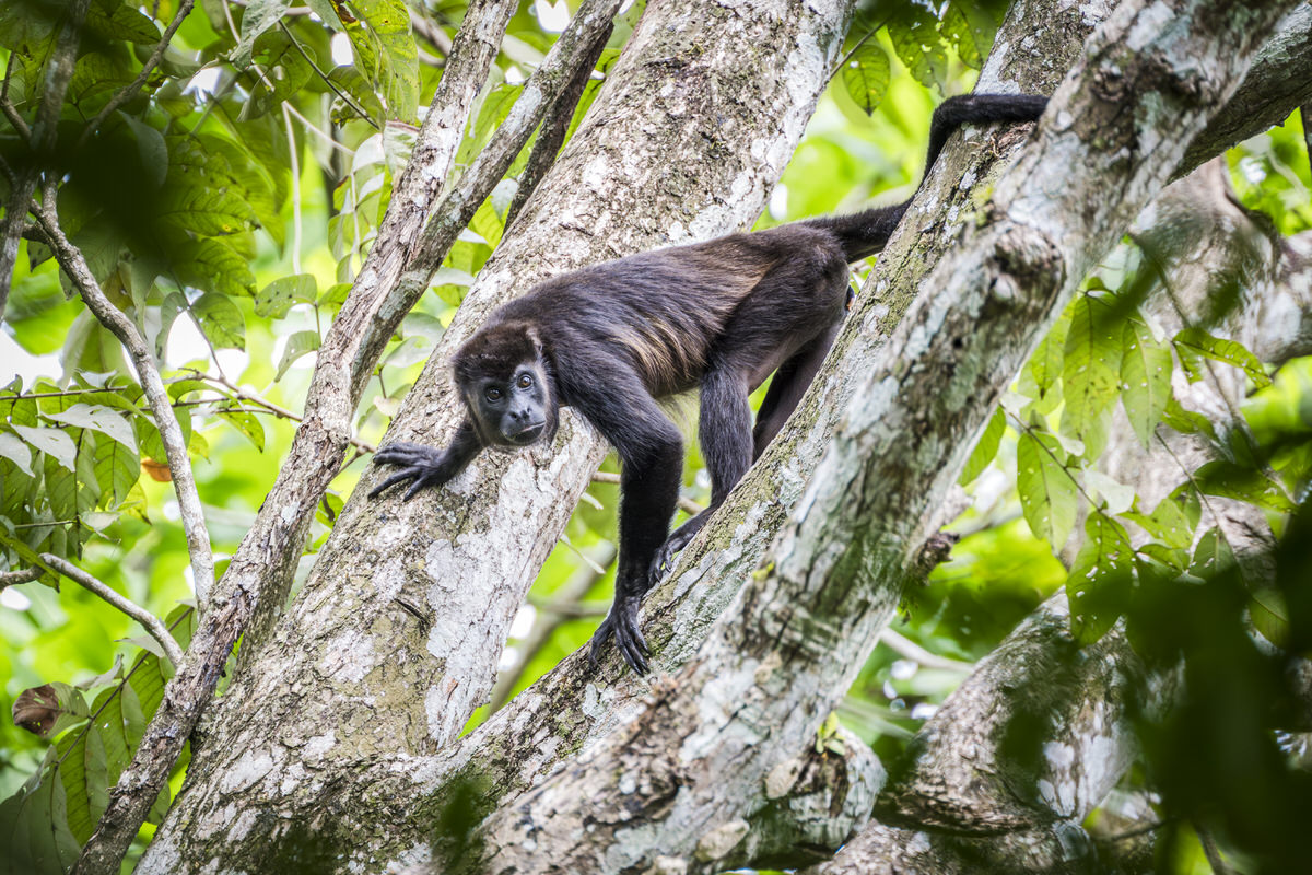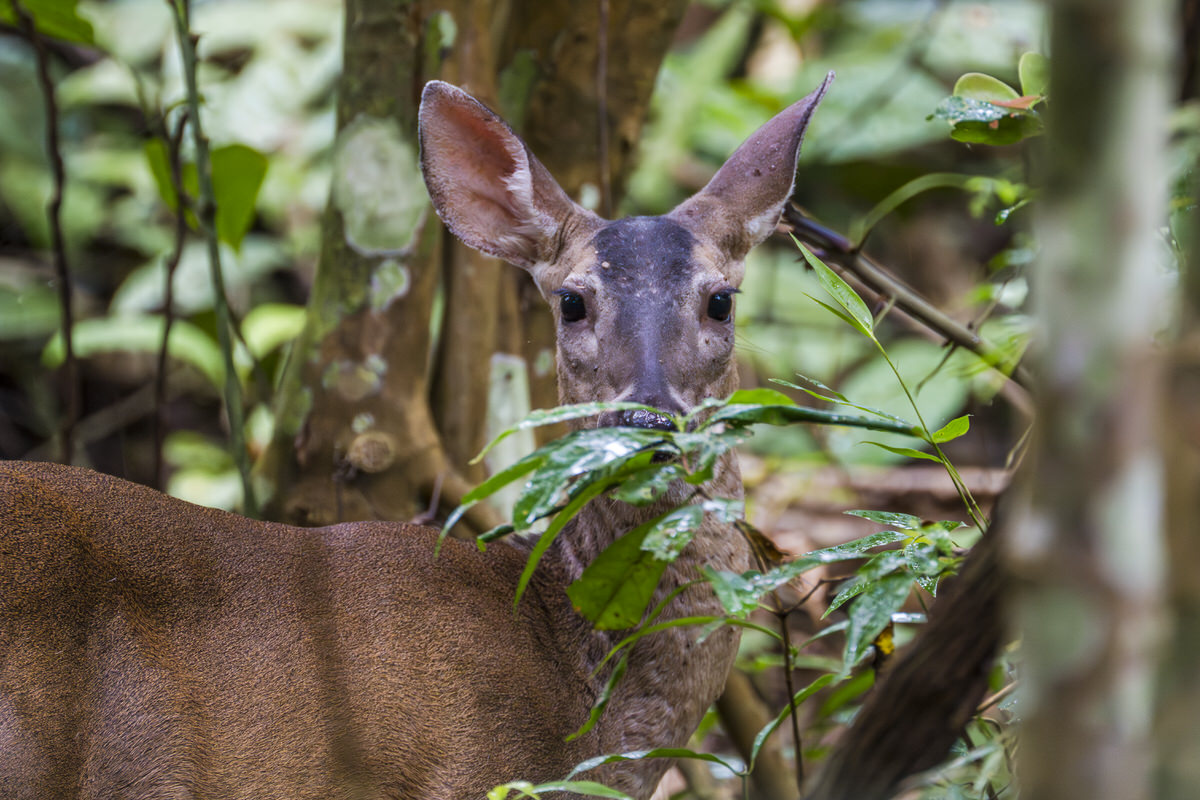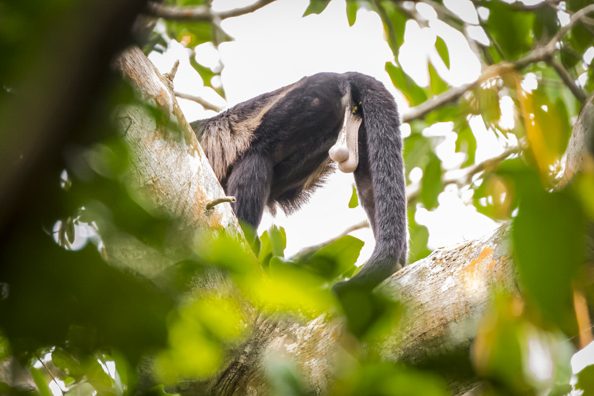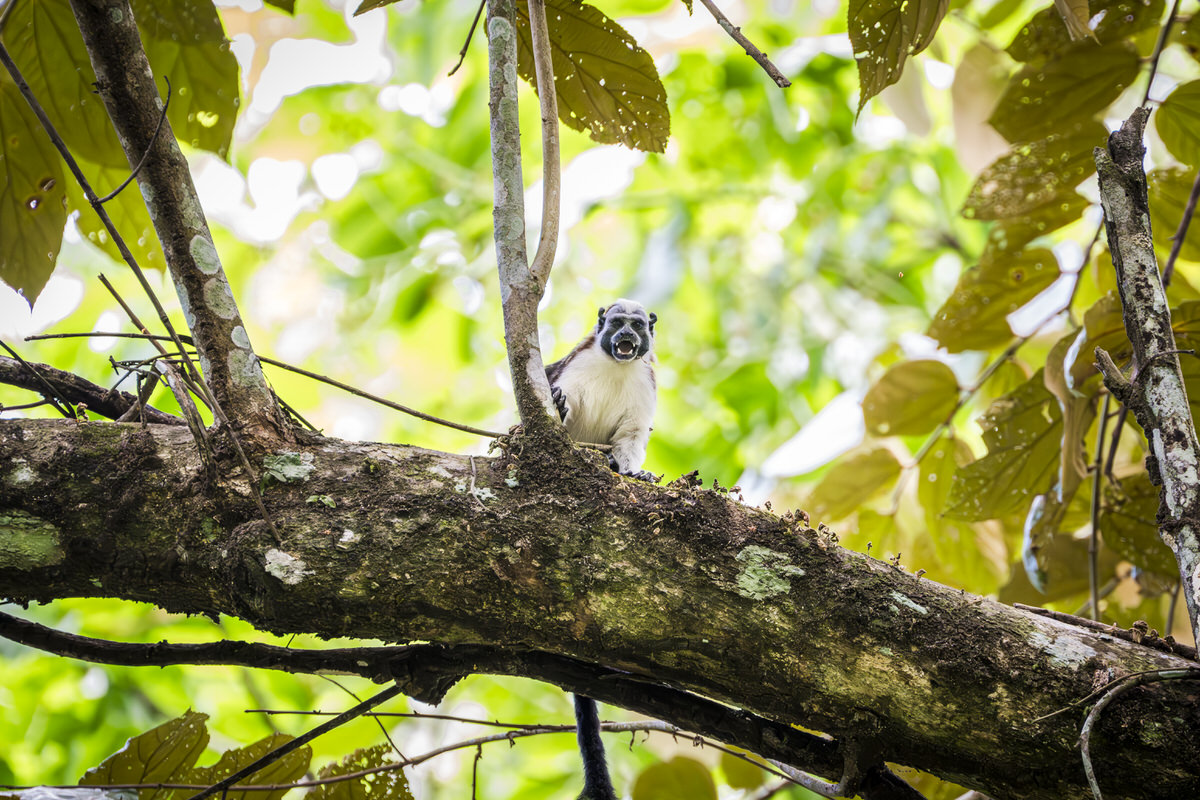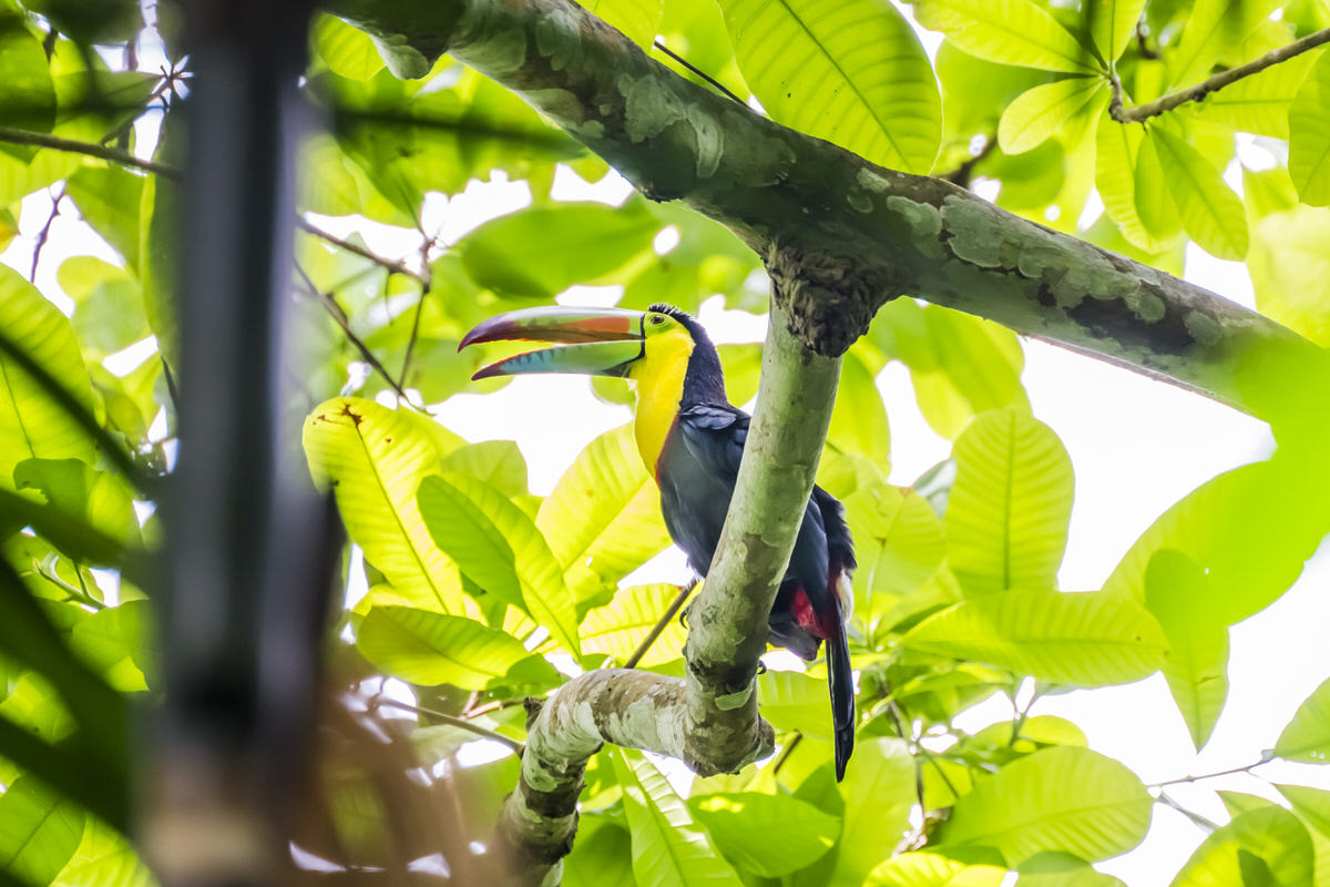 Vorige keer zagen we luiaards, een agouti en diverse vogels. Nu zien we geen enkele luiaard, zelfs niet als iemand tegen ons zegt: om de hoek op de top zit een luiaard…. die zien we niet. Wat we wel zien deze keer. Een stuk of 6 zwavelborsttoekans, brulapen, een hert, een leguaan en een groepje roodnektamarins. Die laatste zijn heel kleine en vliegensvlugge aapjes.